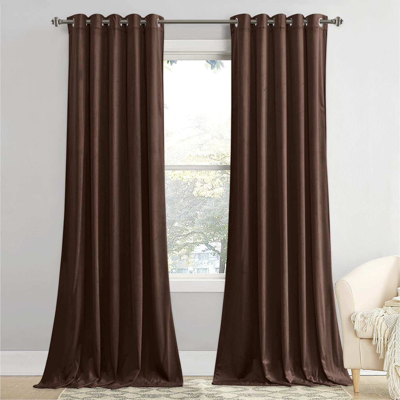 Stangh Wide Brown Velvet Curtains 90 Inches - Super Soft Farmhouse Decor Drapes Room Darkening For Kid Nursery, Solid Door Curta