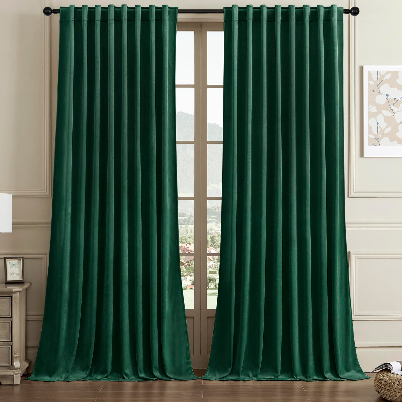 Timeper 96 Inches Dark Green Extra Wide Velvet Curtains Darkening Window Curtains For Living Room, Decorative Energy Saving Curt