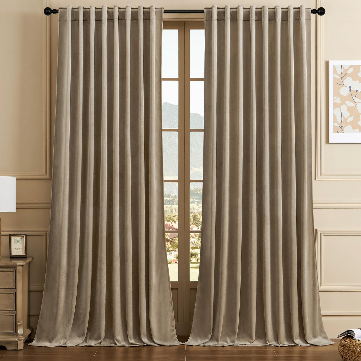 Timeper Taupe 96 Incehs Extra Wide Velvet Curtains Super Soft Light Blocking Drapes Privacy Protect Energy Efficient For Study/O