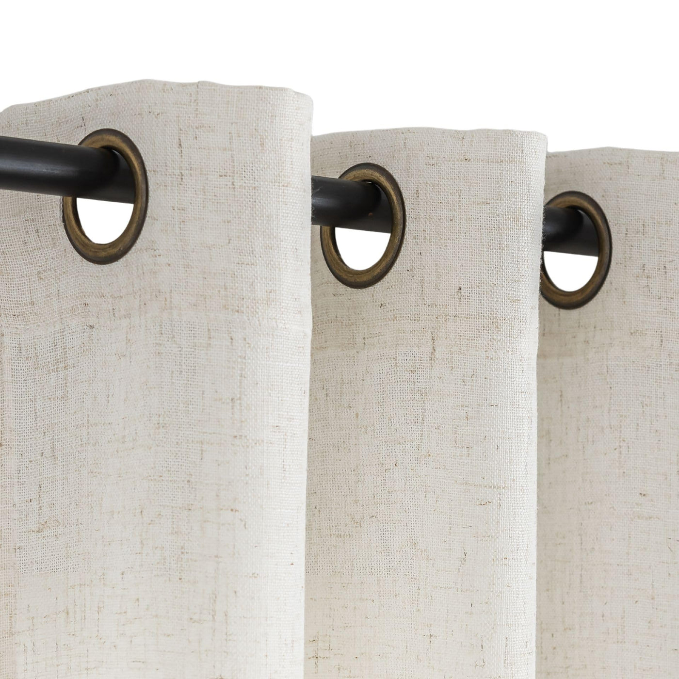 Voilybird Natural Linen Grommet Curtains 90 Inches Long For Living Room Boho Semi Sheer Drapes, 2 Panels