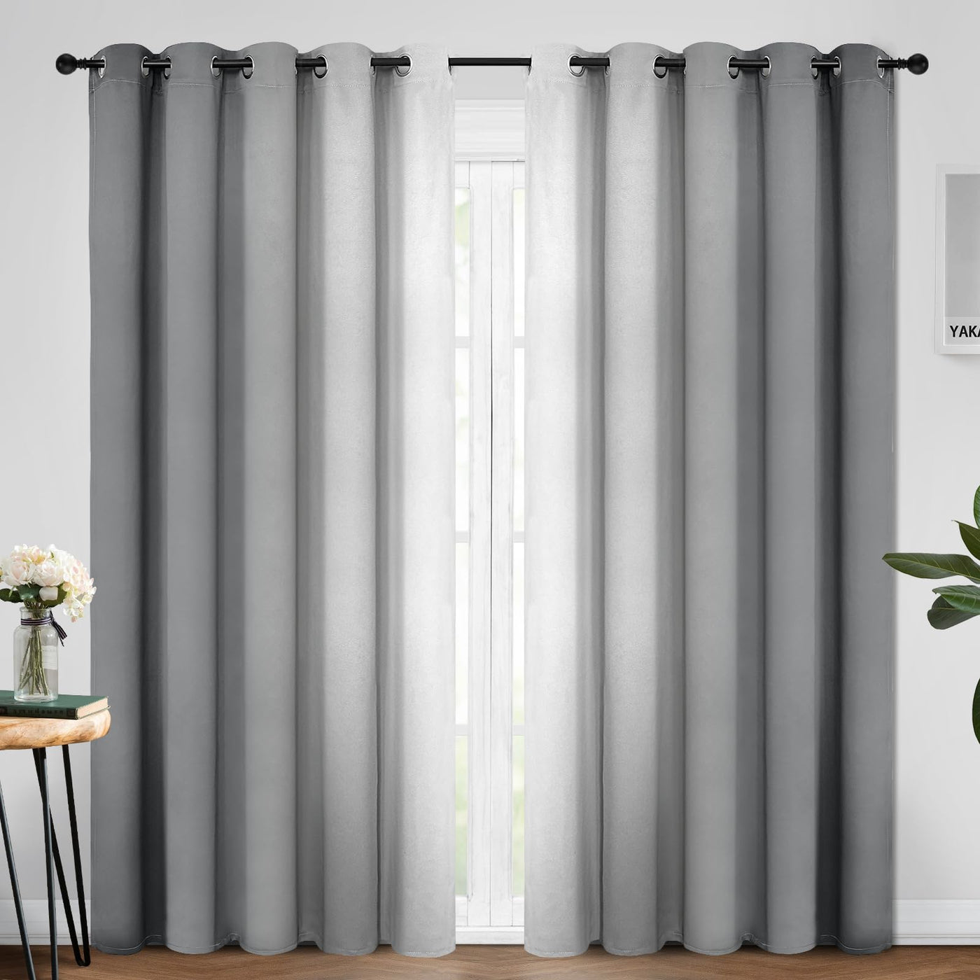Yakamok 84 Inch Length Gray And Greyish White Gradient Color Ombre Curtains For Bedroom, Room Darkening Thermal Insulated Gromme