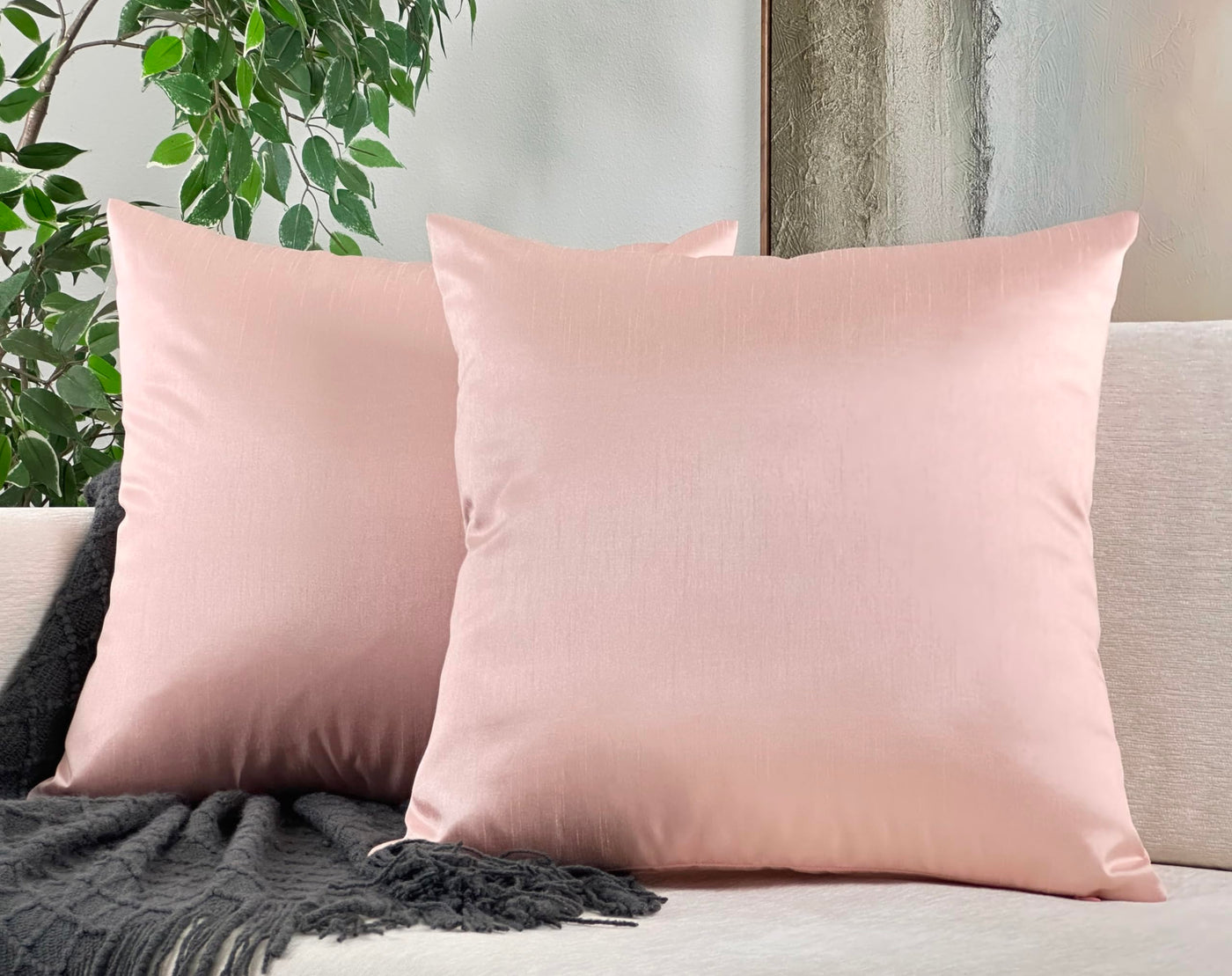 Aiking Home 18X18 Inches Faux Silk Square Throw Pillow Cover, Zipper Closure, Rose Pink (Set Of 2)