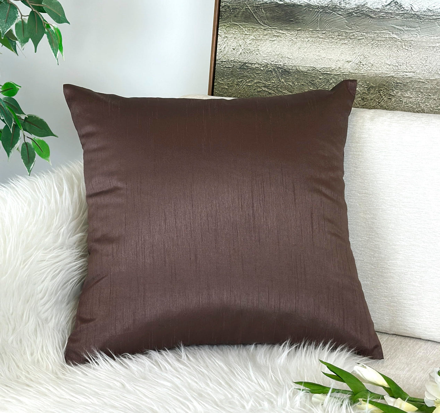 Aiking Home Solid Faux Silk Euro Sham/Pillow Cover, Zipper Closure, 26 By 26 Inches, Brown