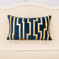 Alerfa 12 X 20 Inches Navy Blue Geometric Silver Leather Striped Cushion Cases Luxury European Throw Pillow Covers Decorative Pi