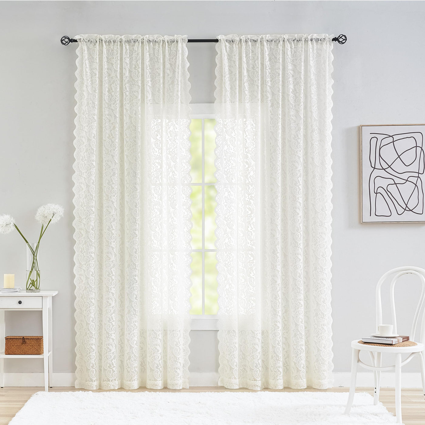 Aligogo Sheer Curtains 90 Inches Long - Lace Curtains Features Scalloped Edges Item Name: Ivory Lace Curtains Opacity: Sheer Package Includes: 2 Panels Of Ivory Lace Curtains Color: Ivory Hang Type: Rod Pocket Pattern: Knitted Vintage Floral Easy Care: Machine Washable In Cold Water; Gentle Cycle; Tumble Dry Low; Do Not Bleach'