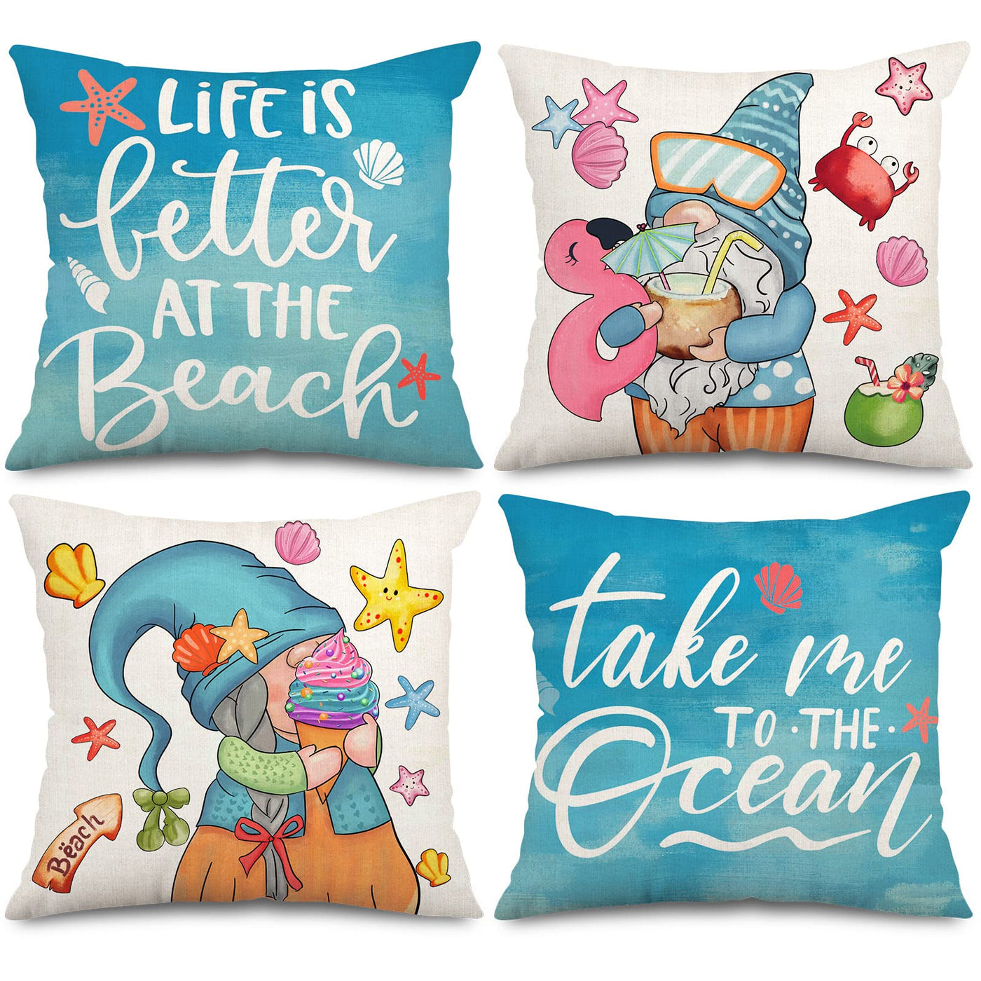 Anydesign Summer Beach Pillow Cover Funny Gnome Starfish Throw Pillow Case Blue Ocean Beach Cushion Cover For Indoor Outdoor Hom