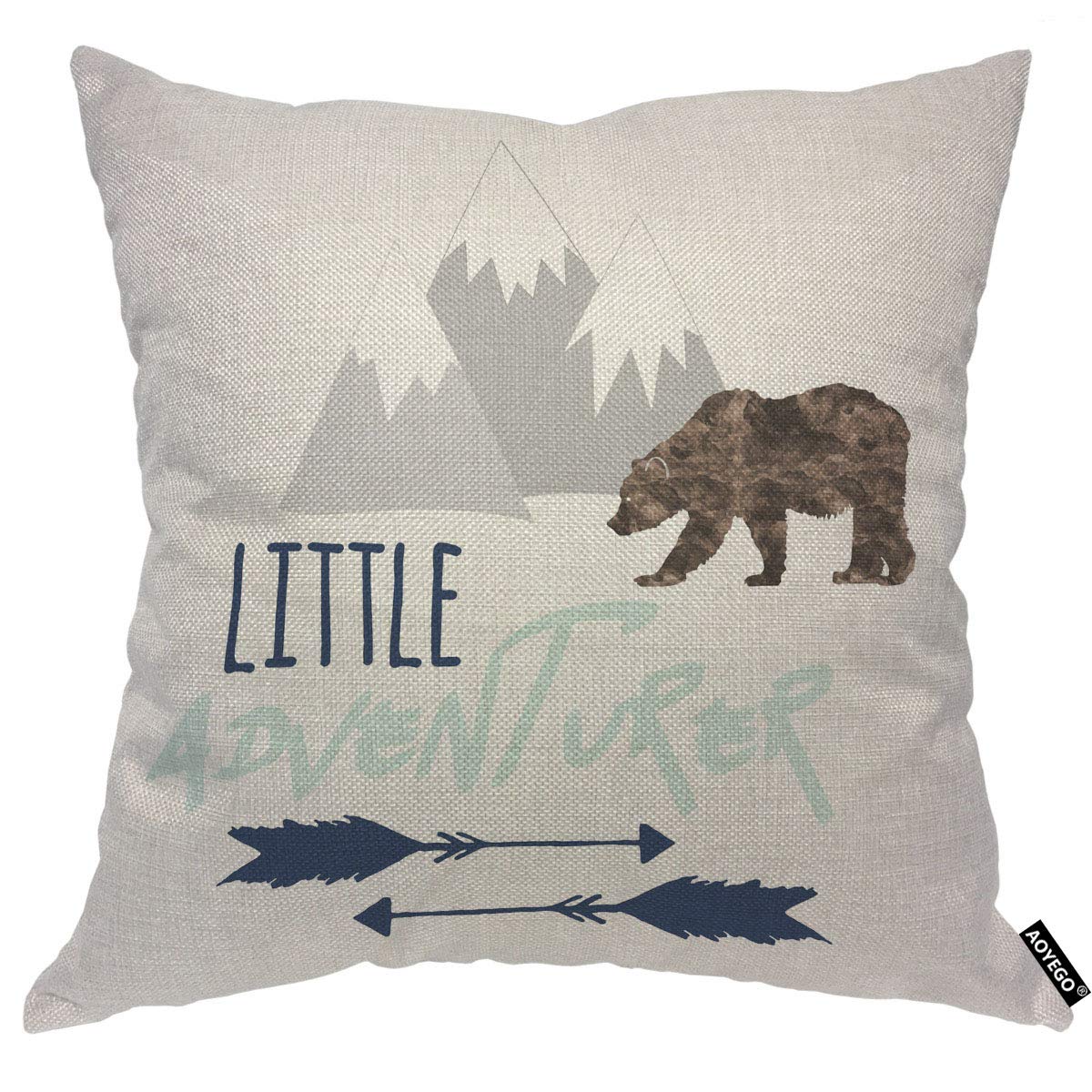 Aoyego Little Adventurer Throw Pillow Cover Bear Mountain Arrow Wild Animal Nature Forest Travel Pillow Case 18X18 Inch Decorati