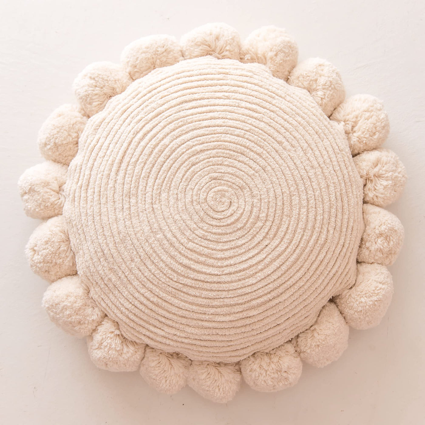 Add A Subtle Pop To Your Space With This Stunning 16 Inch Round Pillow Cover, Featuring Textured Detail On A Slub Weave Complete With 18 Shaggy Poms. This Truly Eye-Catching Decorative Pillow Is The Perfect Way To Accent A Bedroom Or Living Room With A Chic Designer Look. This Set Includes One Decorative Round Pillow Cover With A Natural Off-White Colour Made Of Super Soft 100% Cotton With A Concealed Zipper. Pillow Inserts Are Not Included And Will Have To Be Purchased Separately. The Throw Pillow Cover Is Machine Washable In Cold Water With A Mild Detergent, Although Hand Washing Is The Recommended Method. Banillas Mission Is To Make Products You Love And Enjoy For Many Years, We Are A Real Brand You Can Trust, And We Value Our Customers Above All Else. For Any Queries, Please Contact Us, And We Will Provide Support Within 24 Hours.