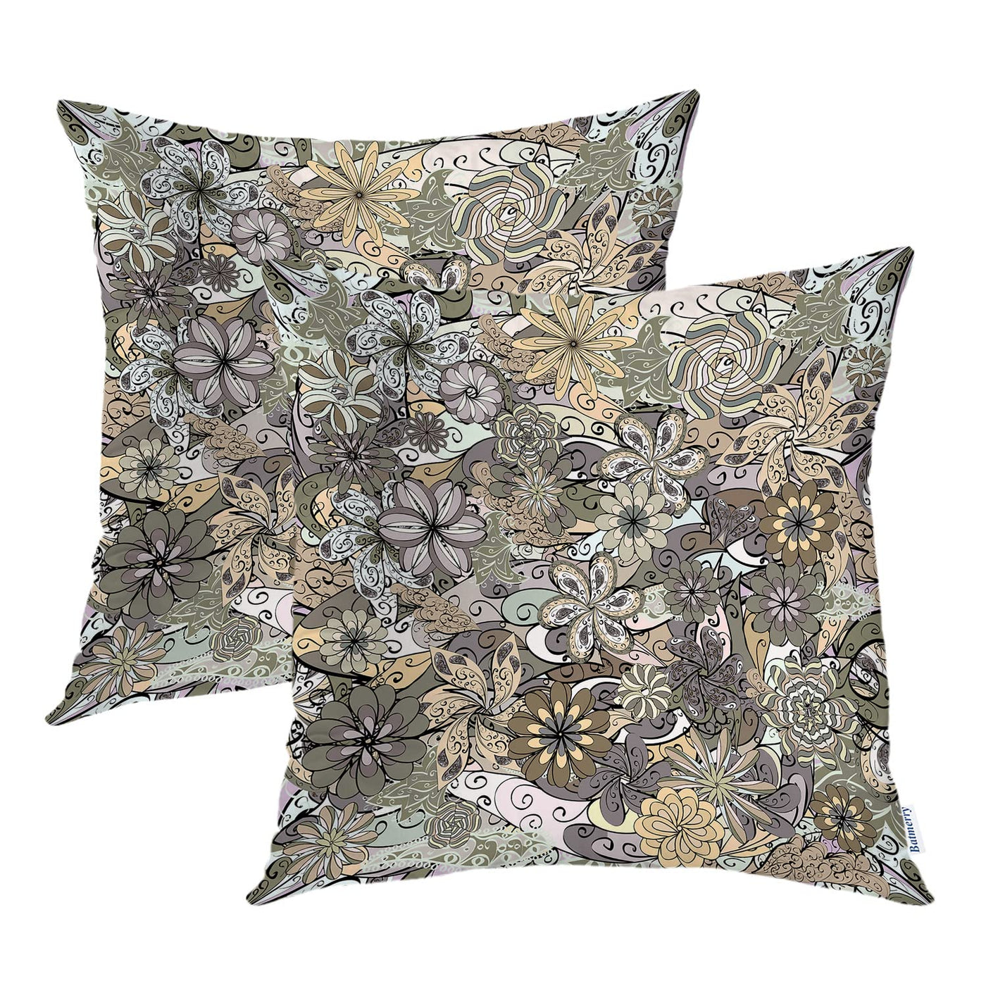 Batmerry Spring Pillows Decorative Throw Pillow Covers 18X18 Inch Set Of 2, Floral With Petals Abstract Beige Black Leaf White A