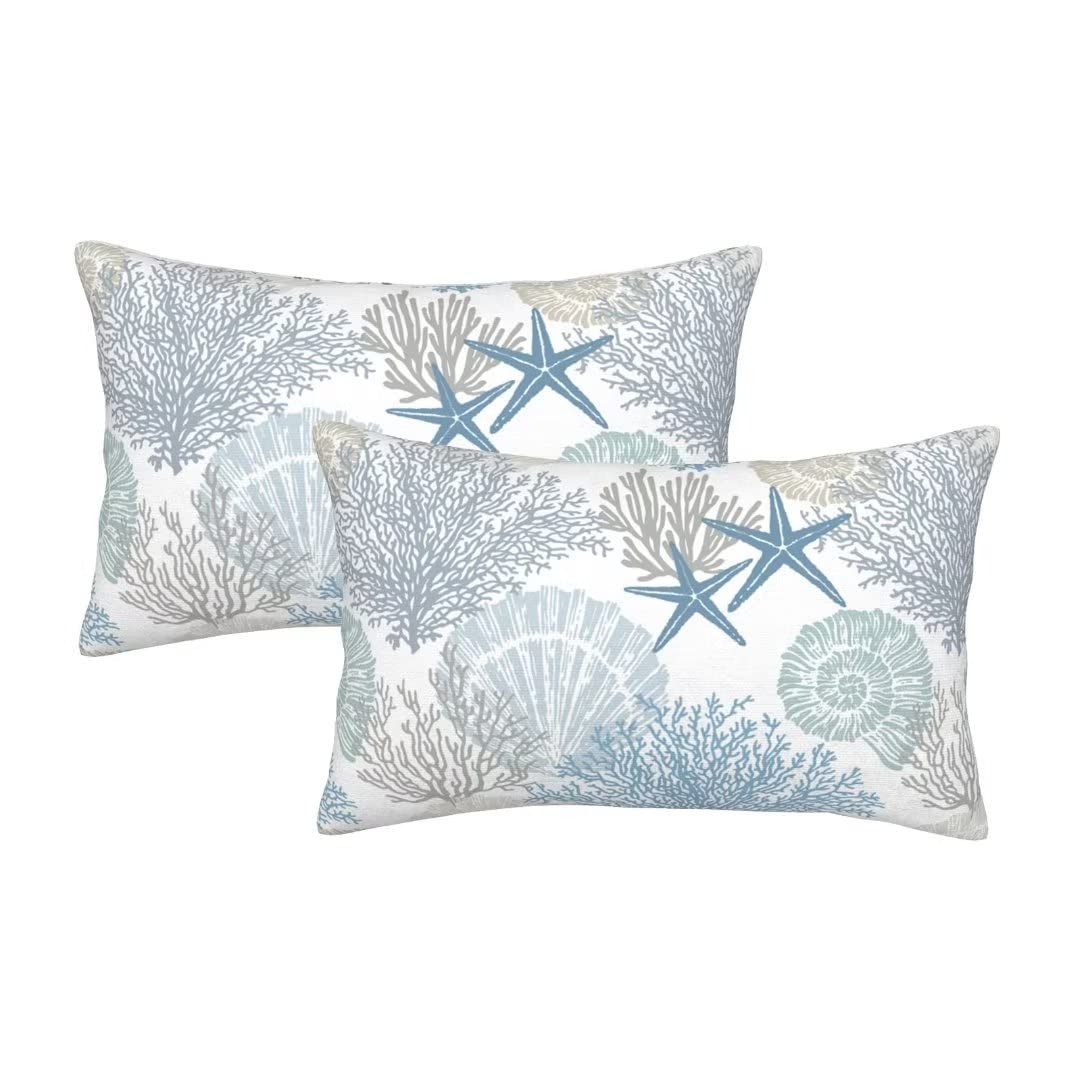 Betginy Summer Coastal Throw Pillow Cover 12X20 Inch Pack Of 2, Beach Seashell Starfish Themed Pillow Covers Square Cotton Ocean