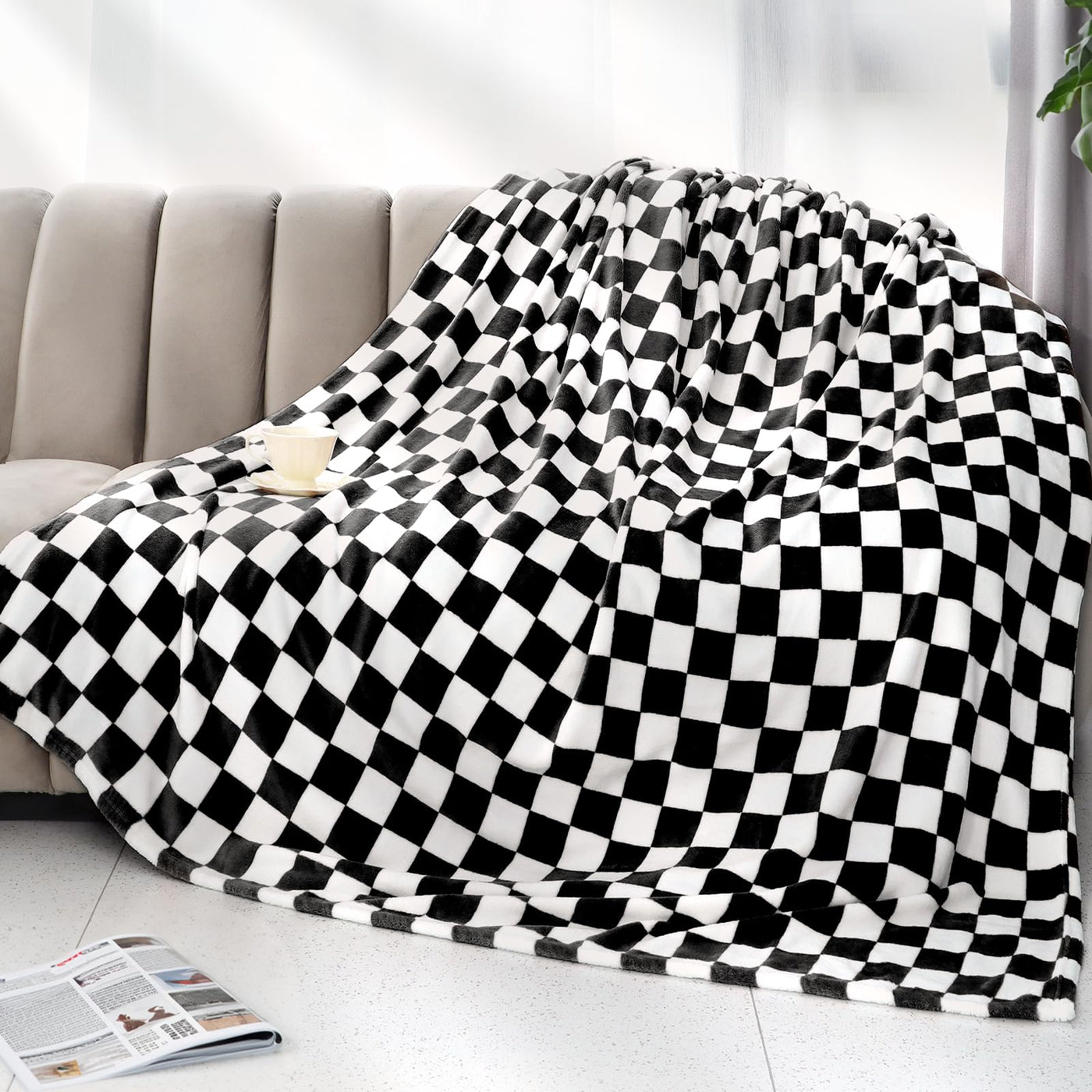 Black Blanket Checkered Big Queen Size Blankets Soft Checkerboard Throw Blankets Home Decor For Couch