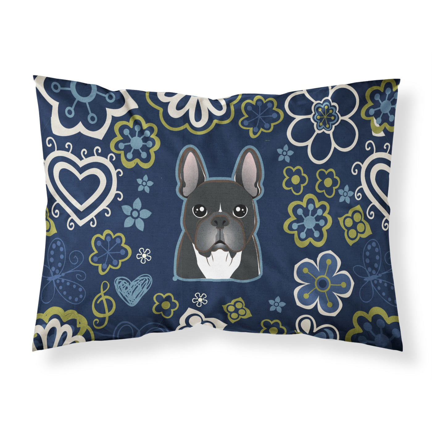 Blue Flowers French Bulldog Fabric Standard Pillowcase