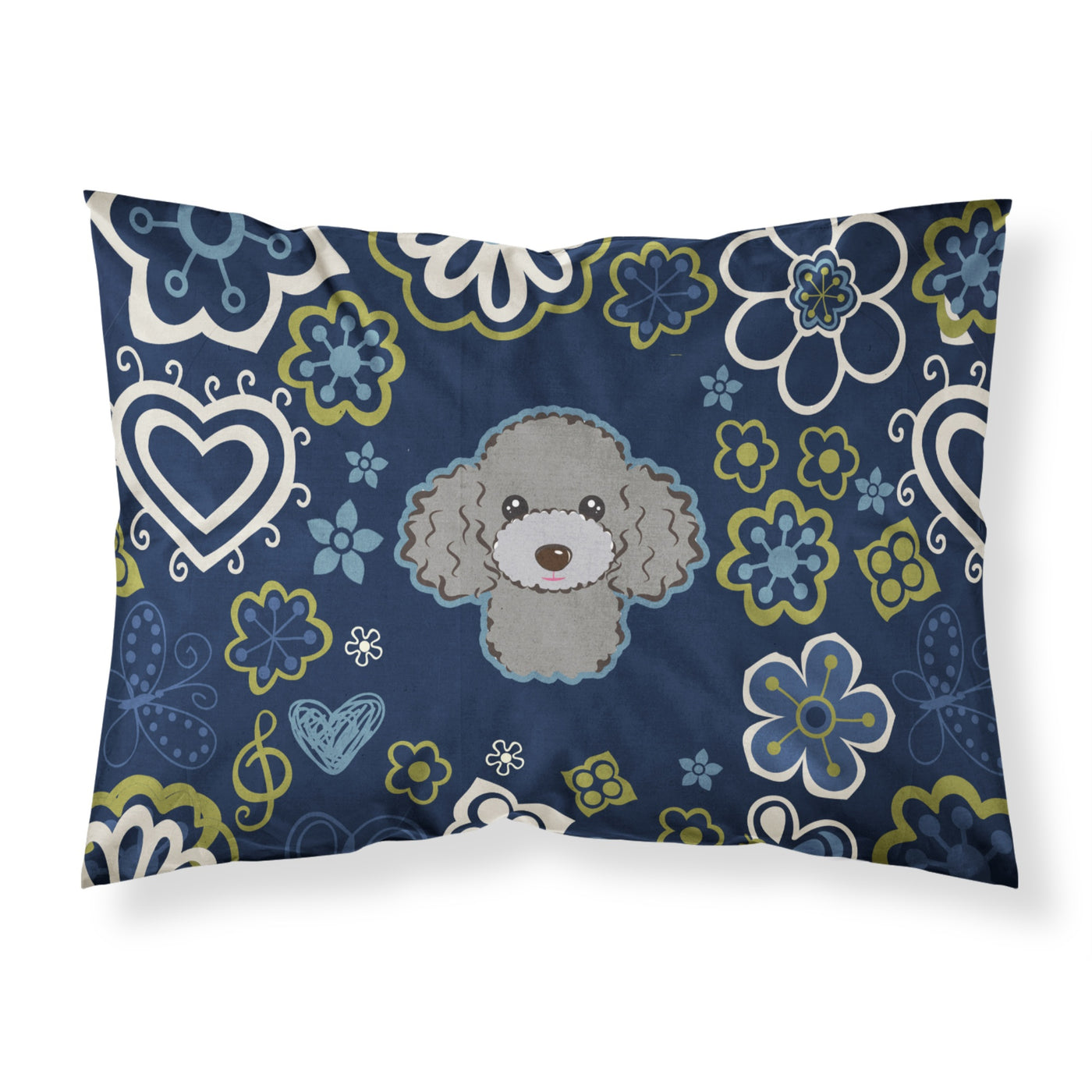 Blue Flowers Silver Gray Poodle Fabric Standard Pillowcase