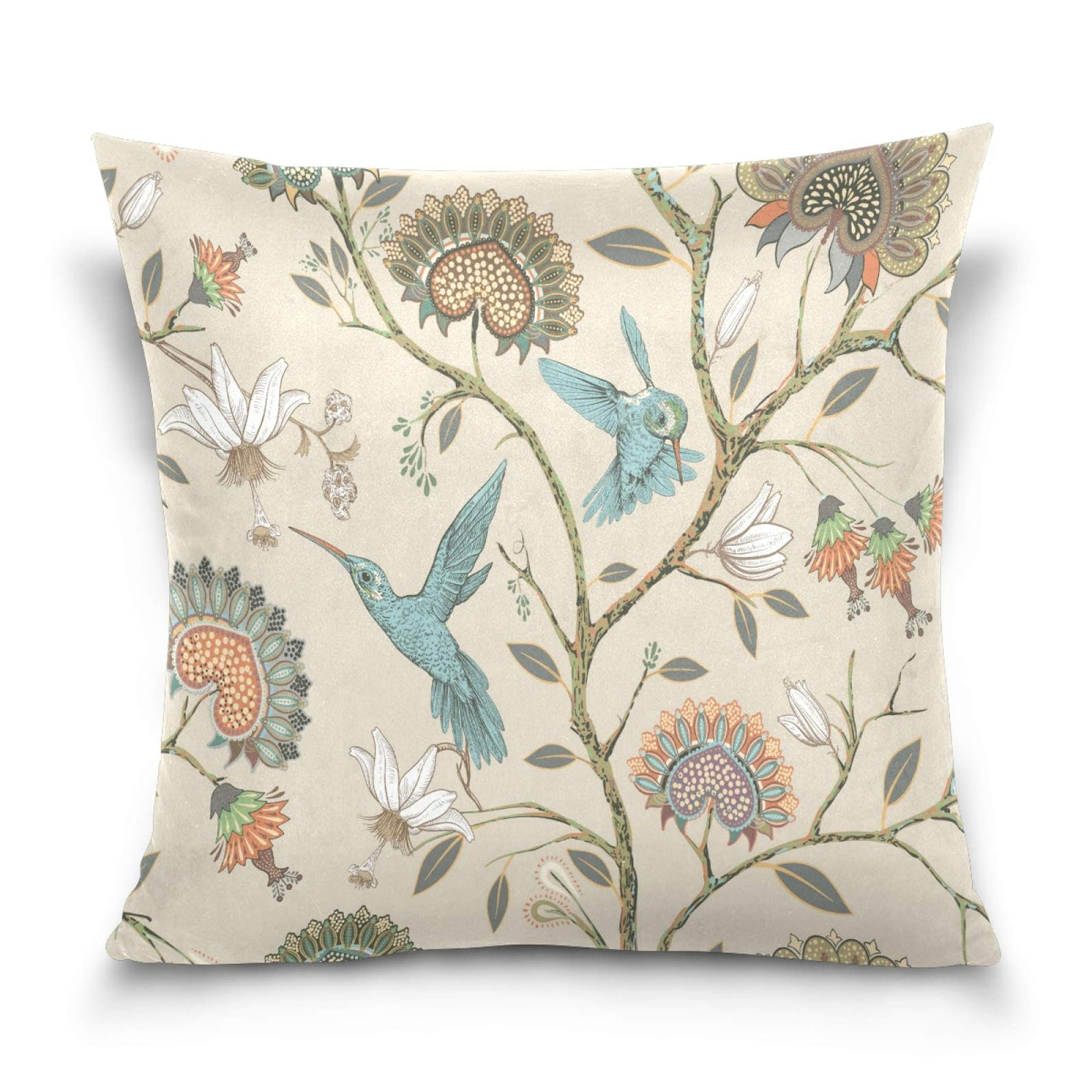 Blueangle Hummingbirds And Plants Pillow Covers 16 X 16 Inch Square Decorative Throw Pillow Covers Cushion Case For Sofa Couch H