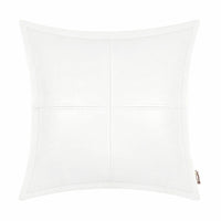 Brawarm White Leather Throw Pillow 22 X 22 Inches, Faux Leather Pillow Cover With Piping, Hand Stitched Leather Decorative Throw