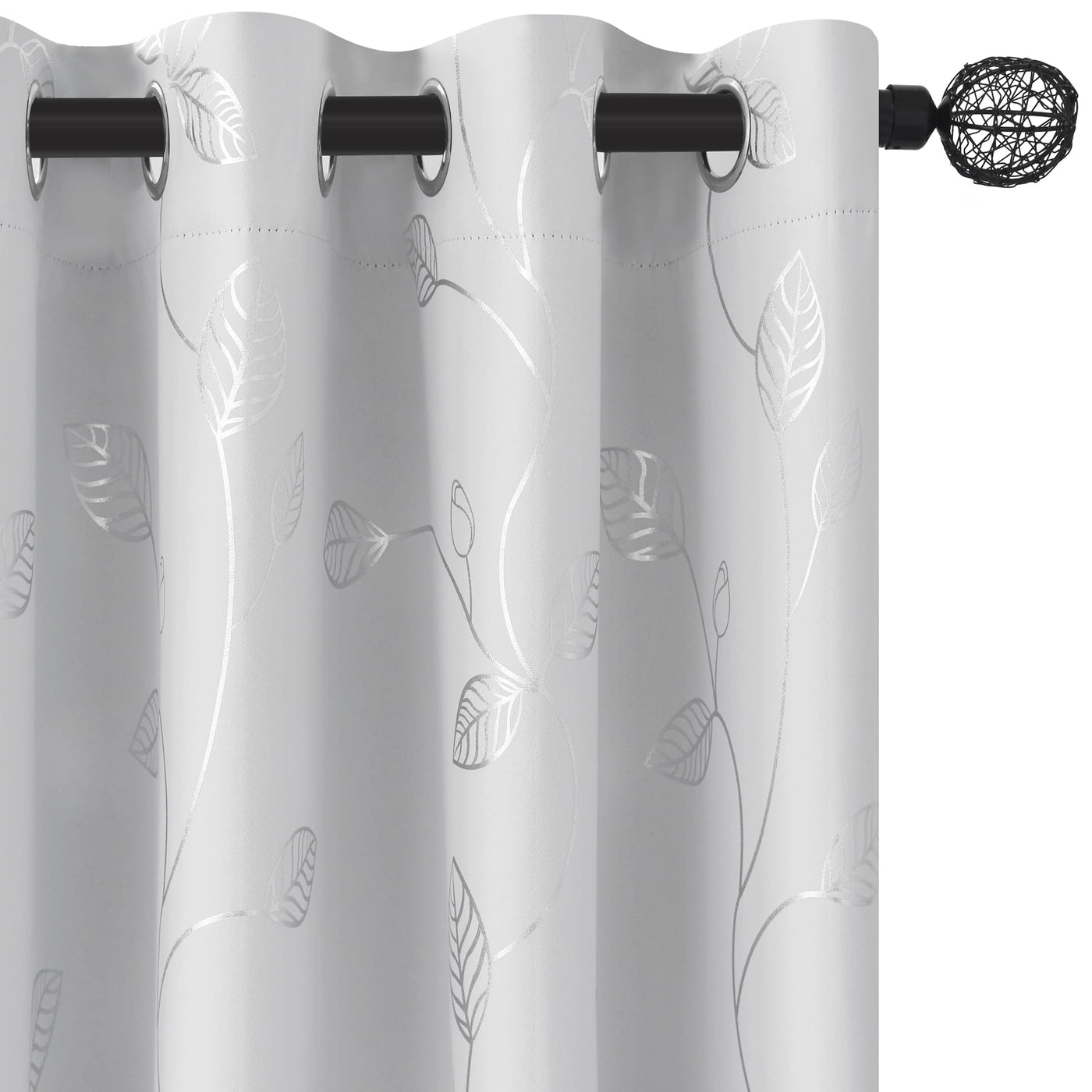 Buhua Room Darkening Curtains 63 Inch Length, Window Treatments For Living Room Grommet Curtains With Silver Leaf Foil Design (5
