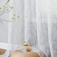 Buhua White Sheer Curtains 108 Inch Length 2 Panels Set, Light Filtering Curtains With Tree Branches Print, Semi-Sheer Curtain For Bedroom (52 X 108 Inch, 1 Pair, White)