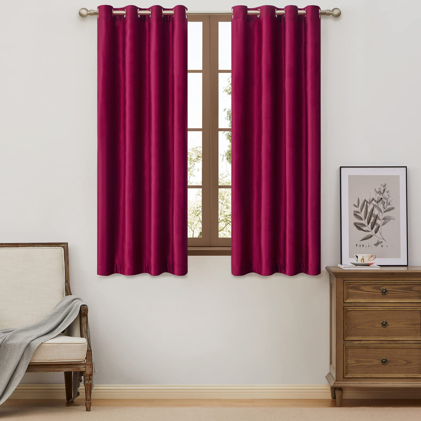 Bulbul Red Curtains 63 Inch Length- Living Room Red Velvet Blackout Window Drapes Curtains Thermal Insulated Room Darkening Deco