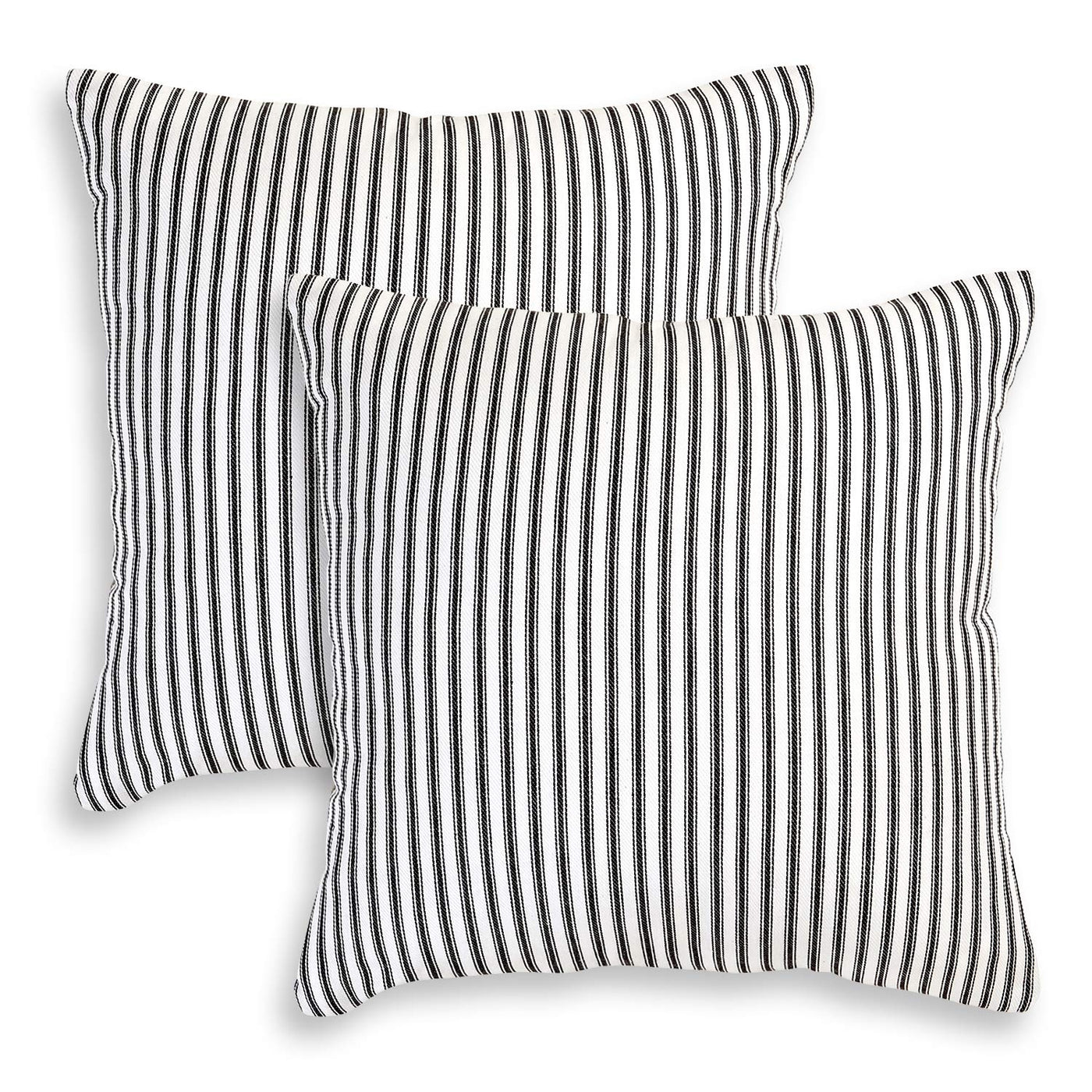 Classic Woven Black And White Ticking Stripe Throw Pillow Covers. Invisible Zipper On Bottom. Perfect For Your Sofa, Chair Or Bed. Complements Both Traditional And Contemporary Home Decor. 100% Cotton. Machine Wash Cold, Line Dry. Made In India. Matching Window Treatments Available Separately. Pillow Insert Not Included.