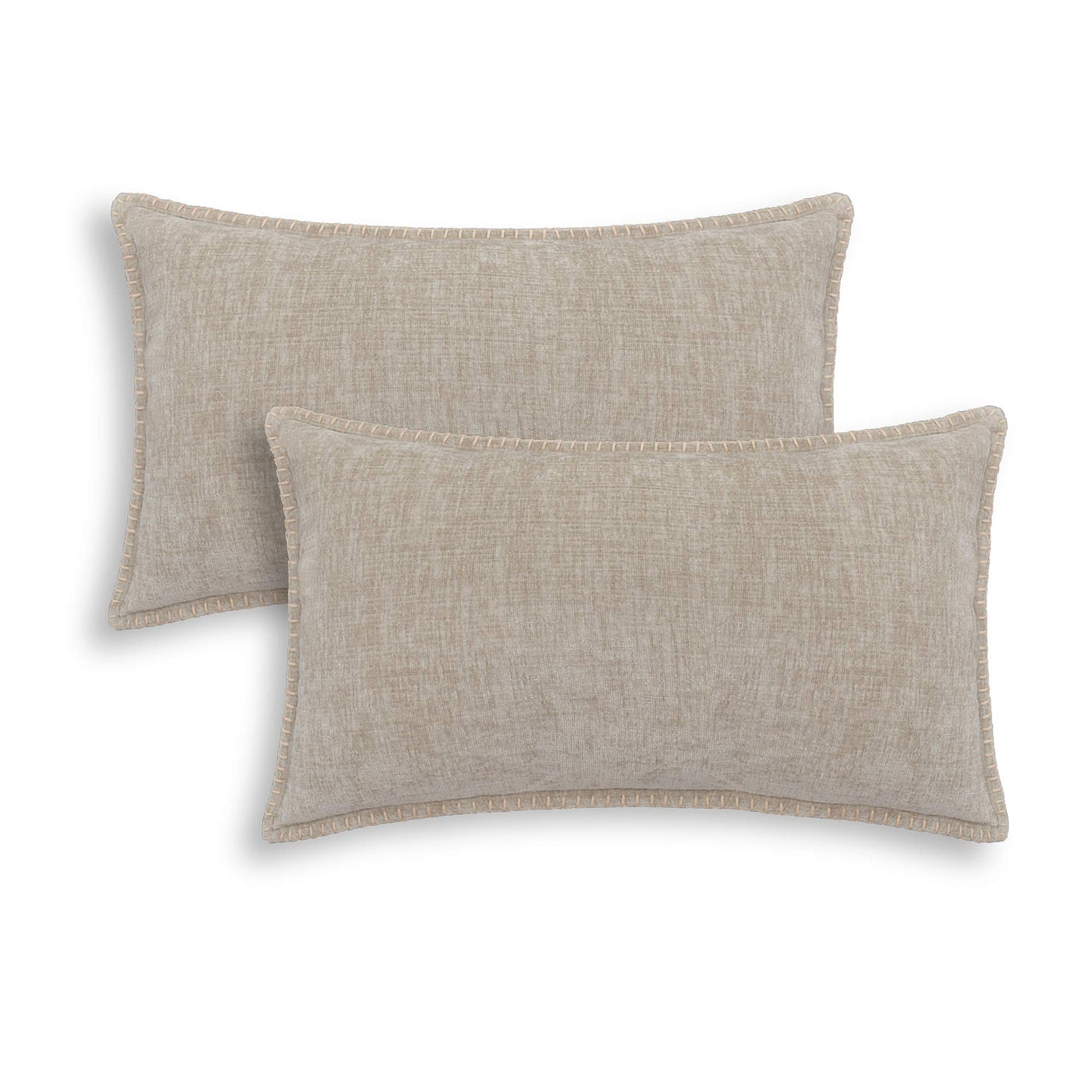 Calitime Decorative Couch Throw Pillow Covers 12 X 20 Inches Pack Of 2 Cotton Thread Stitching Edges Solid Dyed Soft Chenille Cu