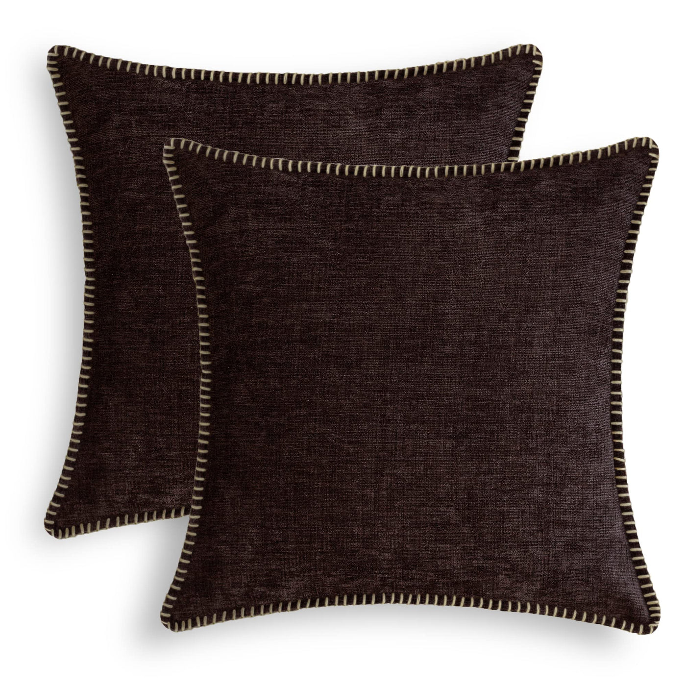 Calitime Decorative Couch Throw Pillow Covers 24 X 24 Inches Pack Of 2 Cotton Thread Stitching Edges Solid Dyed Soft Chenille Cu