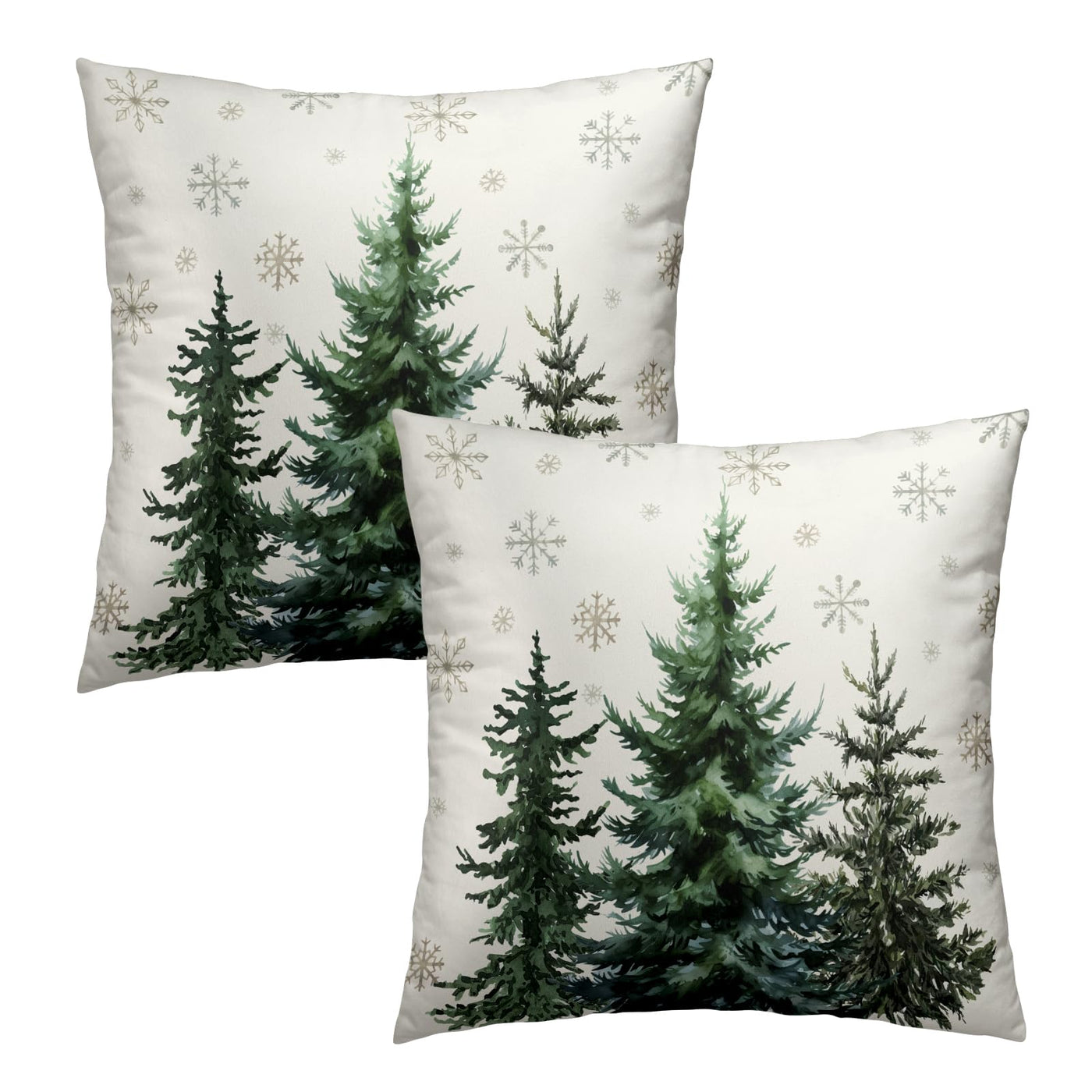 Christmas Trees Throw Pillow Cover 18X18 Inch Pack Of 2 Snowflake Forest Print Cushion Pillow Case Square Cotton Green Tree Wint