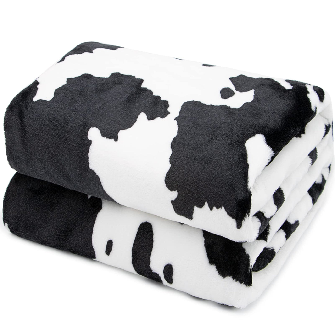 Cow Print Blanket Warm Plush Cute Black Cow Throw Blanket Soft Fleece Flannel Lightweight Throw Blankets Sofa Couch Bed Travel C