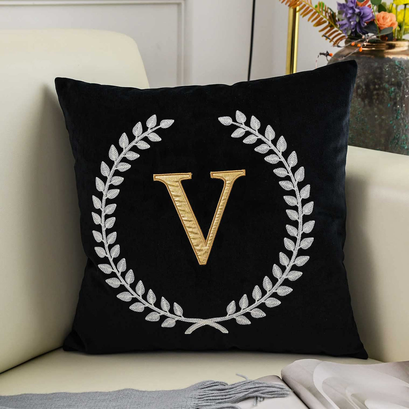 Decopow Black Velvet Throw Pillow Cover, Personalized Letter Embroidery Square 18 Inches Decorative Pillow Cover,Cover Only (V)