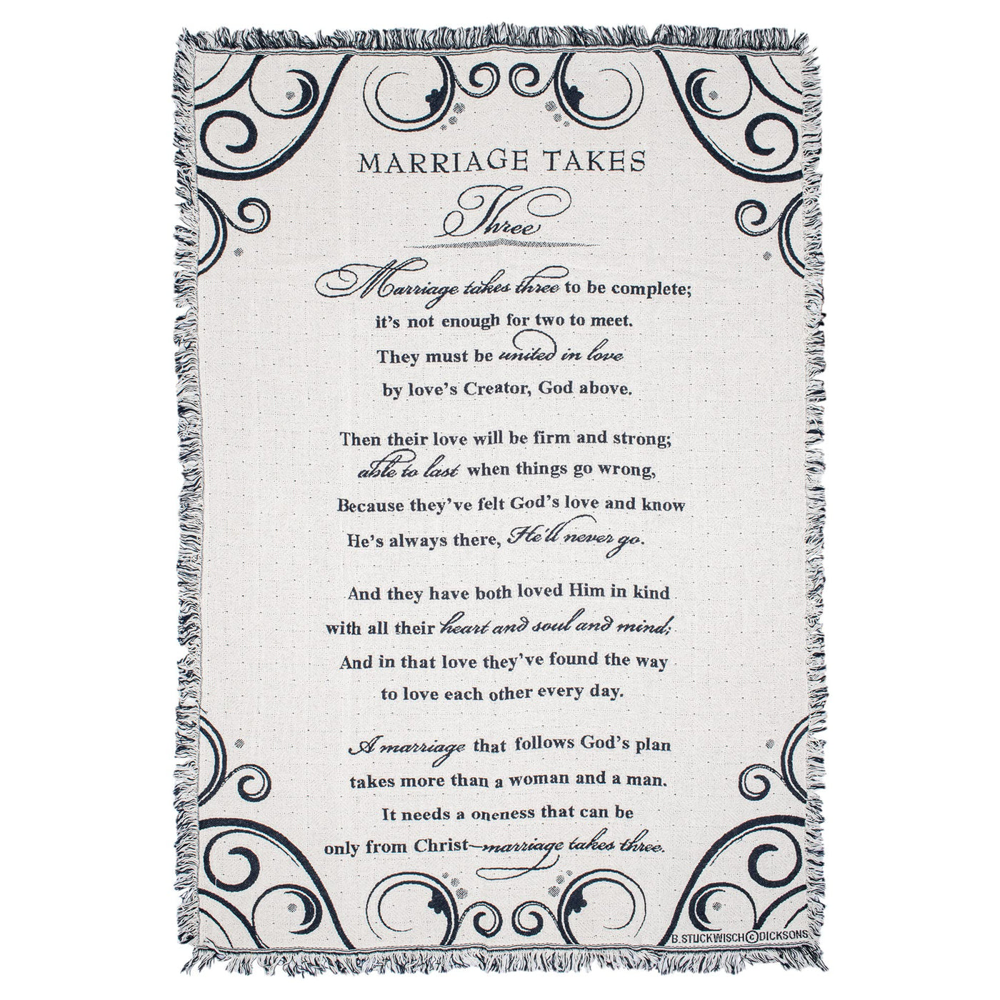 Dicksons Marriage Takes Three Black And White 52 X 68 All Cotton Tapestry Throw Blanket