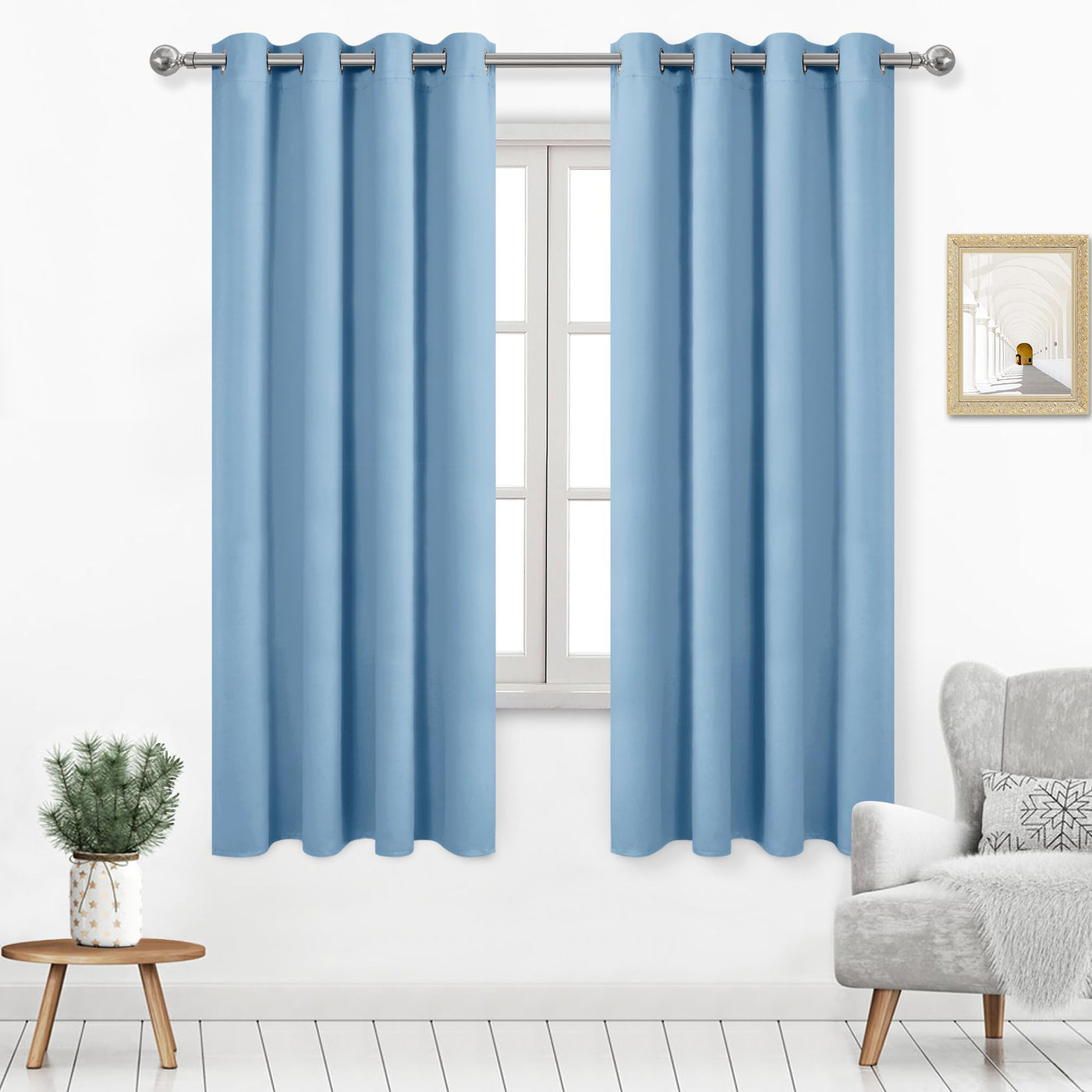 Dwcn Blackout Curtains For Bedroom, Thermal Living Room Curtains, W52 X L72 Inches Long, Set Of 2, Light Blue