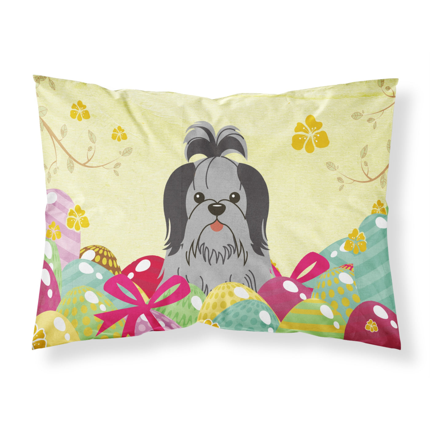 Easter Eggs Shih Tzu Black Silver Fabric Standard Pillowcase