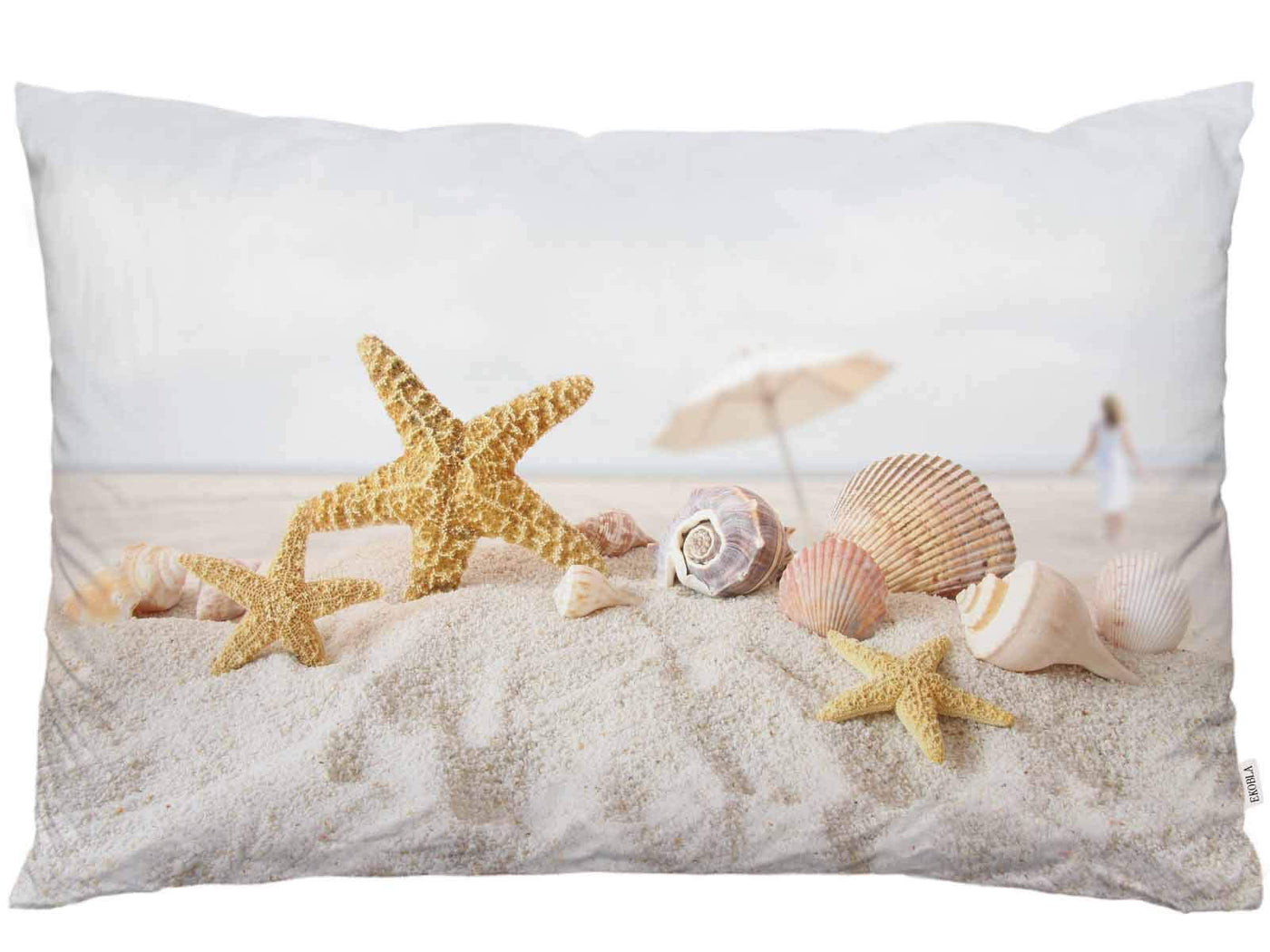 Ekobla Throw Pillow Cover Sandy Beach Tropical Ocean Sea Waves Starfish Shell Exotic Holiday Coastal Decor Lumbar Pillow Case Cu