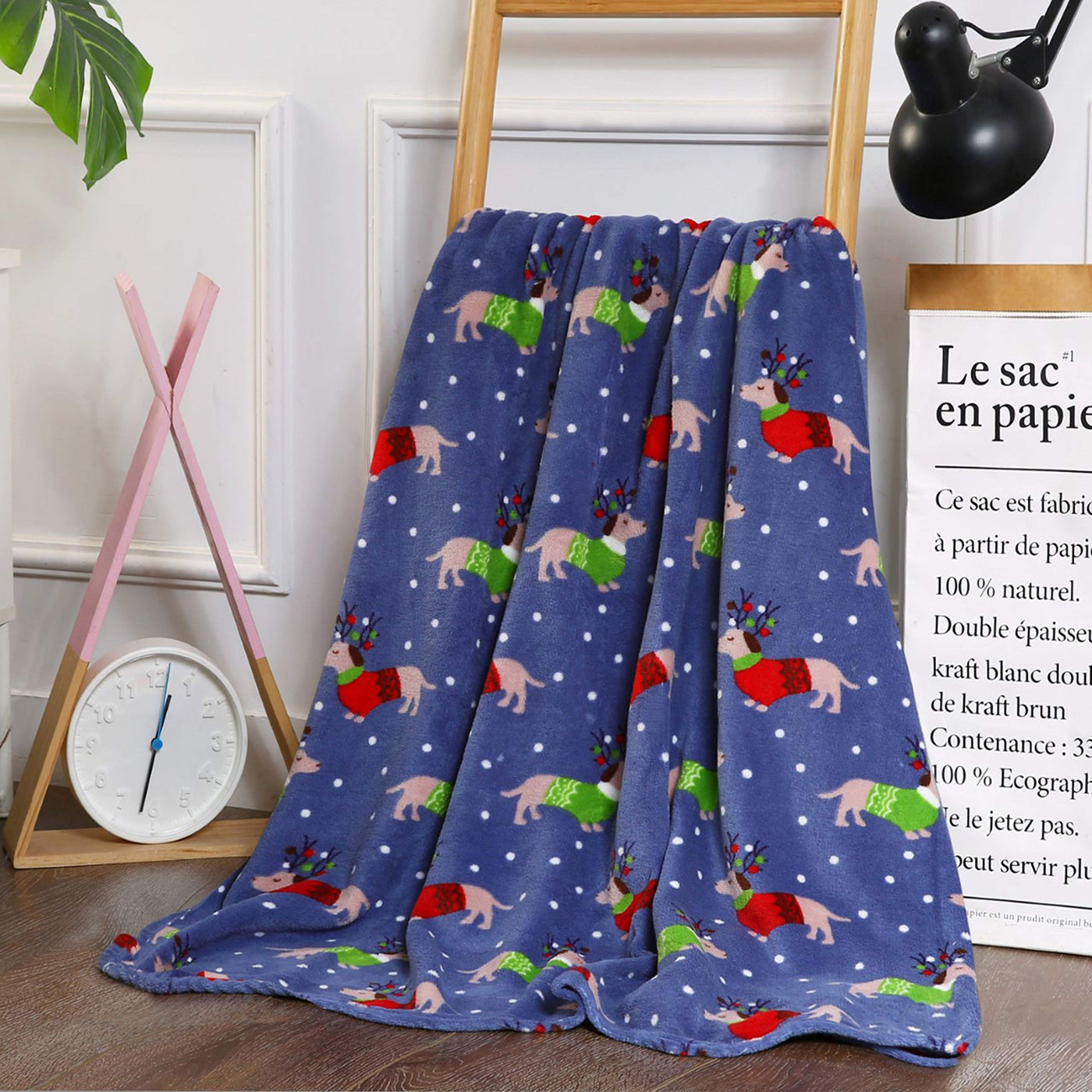 Elegant Comfort Velvet Touch Ultra Plush Christmas Holiday Printed Fleece Throw/Blanket-50 X 60Inch, (Dogs In Sweaters)