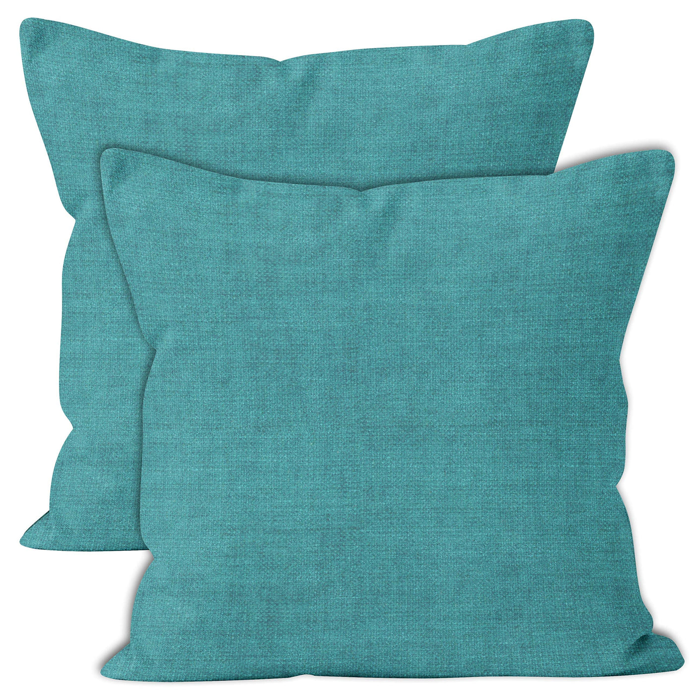 Encasa Thick Chenille Throw Pillow Covers Set Of 2 | Turq - (24X24) (60X60 Cm) | Decorative Accent Square Throw Pillow Cases For