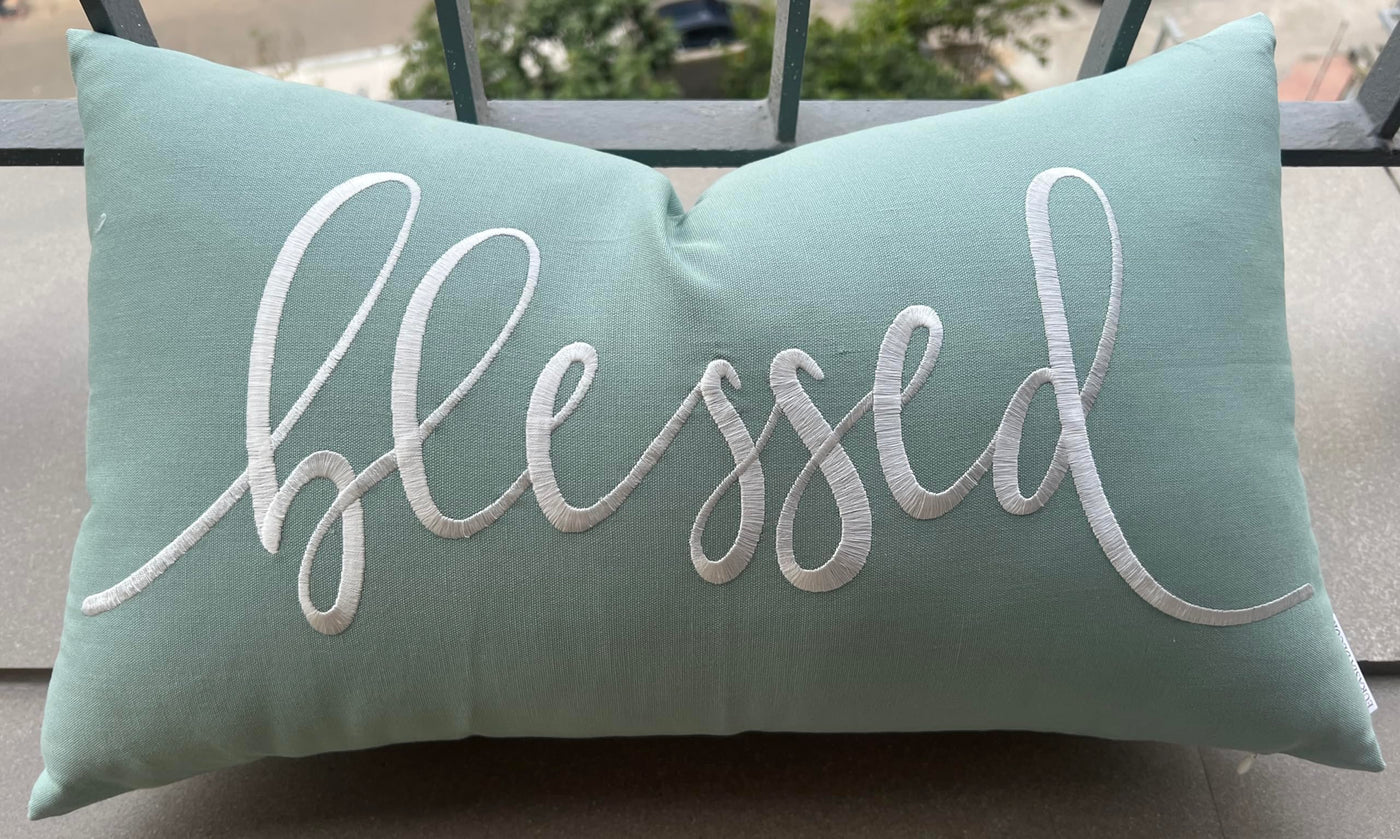 Eurasia Decor Blessed Embroidered Decorative Lumbar Accent Throw Pillowcase - Bedroom, Living Room, Couch, New Home Decor - 12X2