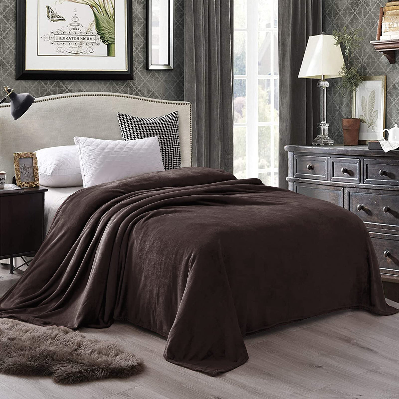 Exclusivo Mezcla Twin Size Flannel Fleece Velvet Plush Bed Blanket As Bedspread, Coverlet, Bed Cover (60X80 Inches, Coffee) Soft