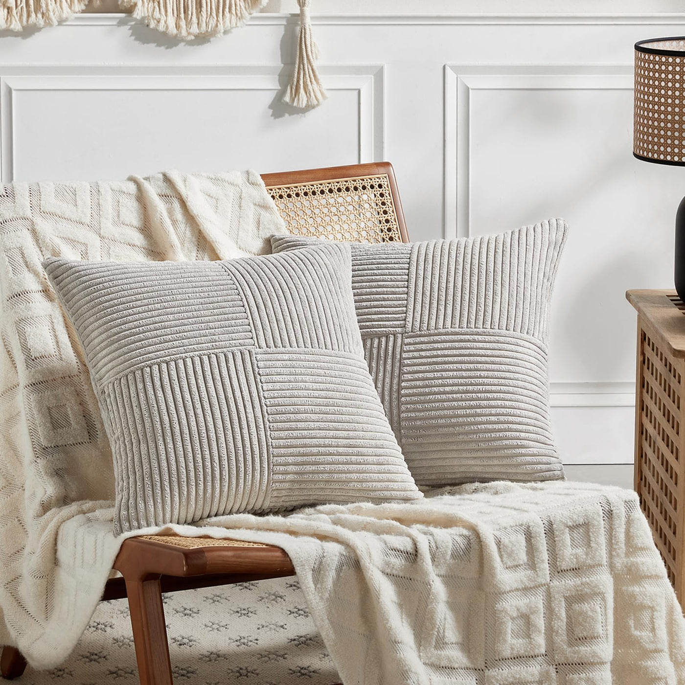 Fancy Homi 2 Packs Neutral Grey Decorative Throw Pillow Covers 16X16 Inch For Living Room Couch Bed, Rustic Farmhouse Boho Home