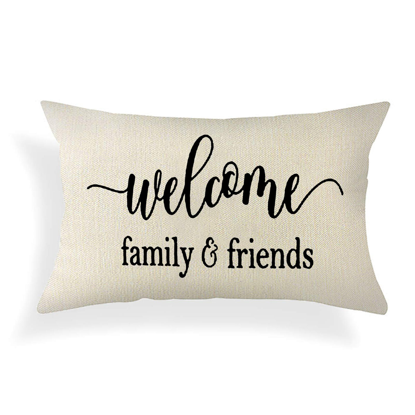 Farmhouse Pillow Covers With Welcome Family And Friends Quotes 12' X 20' Lumbar Pillow Covers Home Decorative Cotton Linen Cus