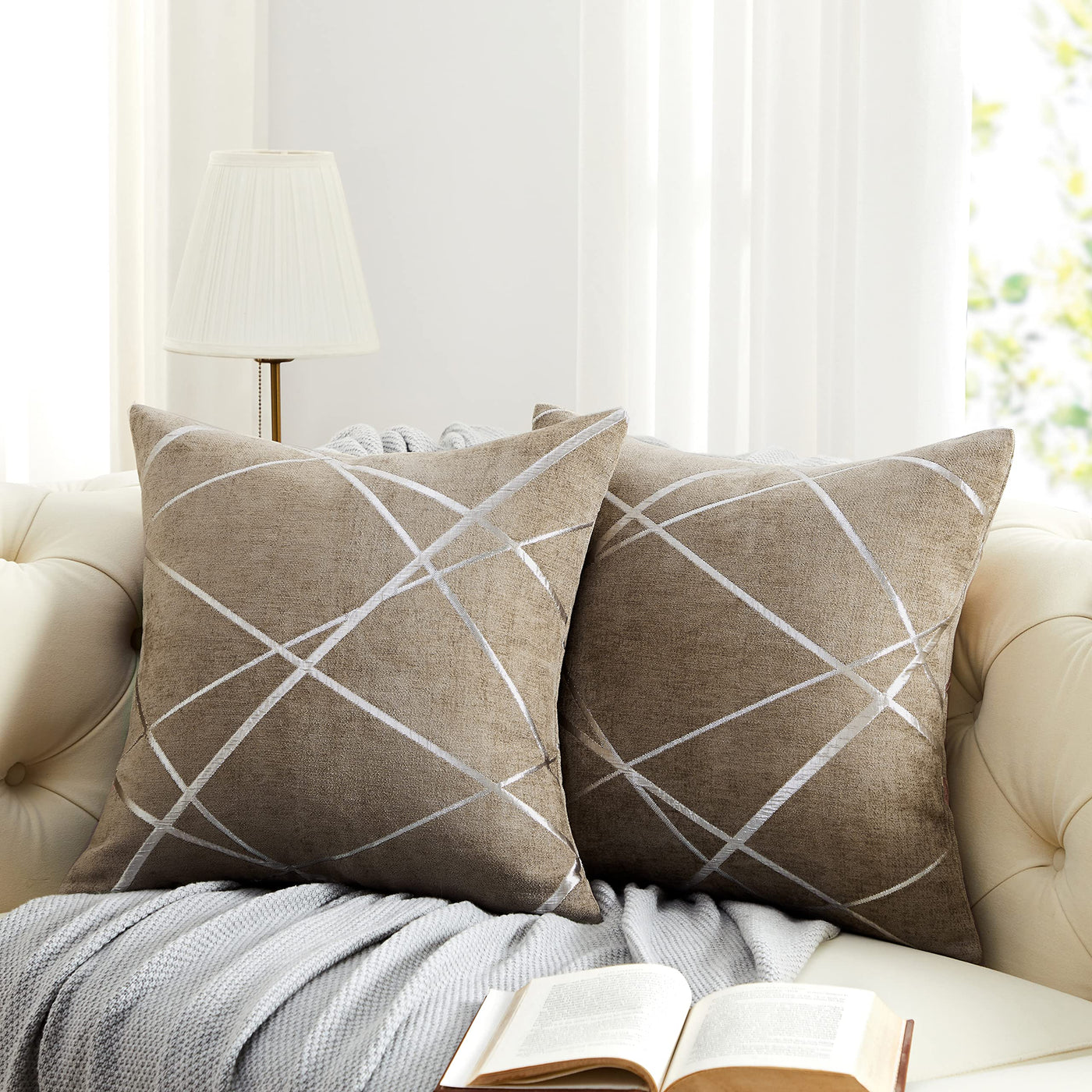 Gigizaza Decorative Couch Pillow Covers 16 X16,Sofa Thick Set Of 2Pcs Cushion Pillow Covers,Square Taupe Brown Luxury Pillows