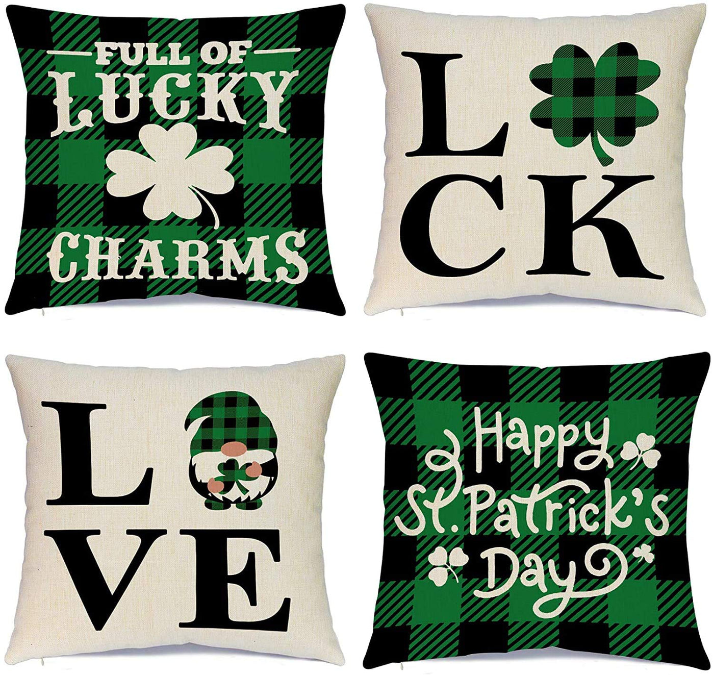 Hlonon St. Patricks Day Pillow Covers 20X20 Inches Set Of 4 St. Patrick'S Day Decorations Buffalo Check Pillow Covers For Irish