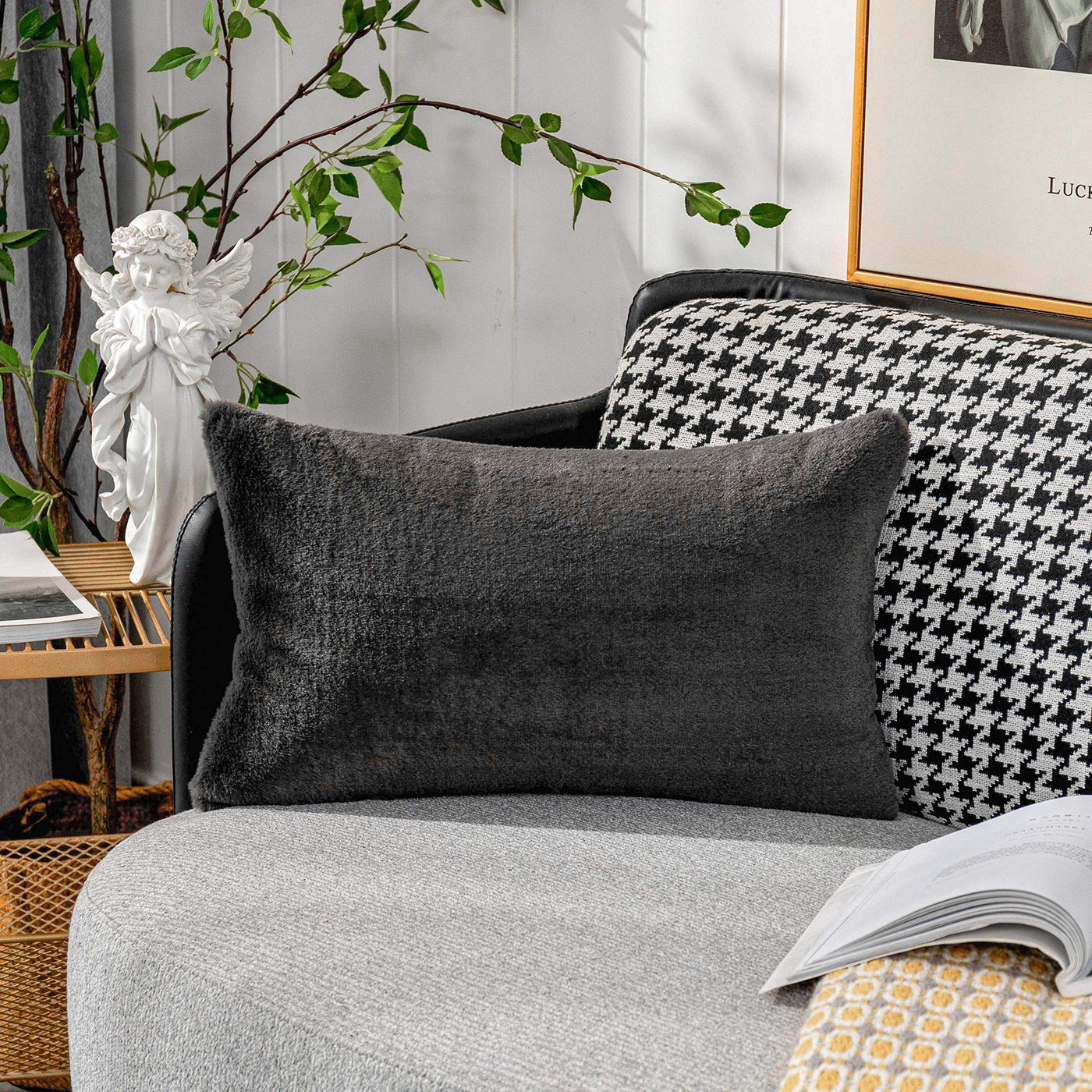 Home Brilliant Dark Grey Throw Pillow Cover Rectangle Decorations Accent Pillow Case Fluffy Faux Fur Soft Throw Pillows For Couc