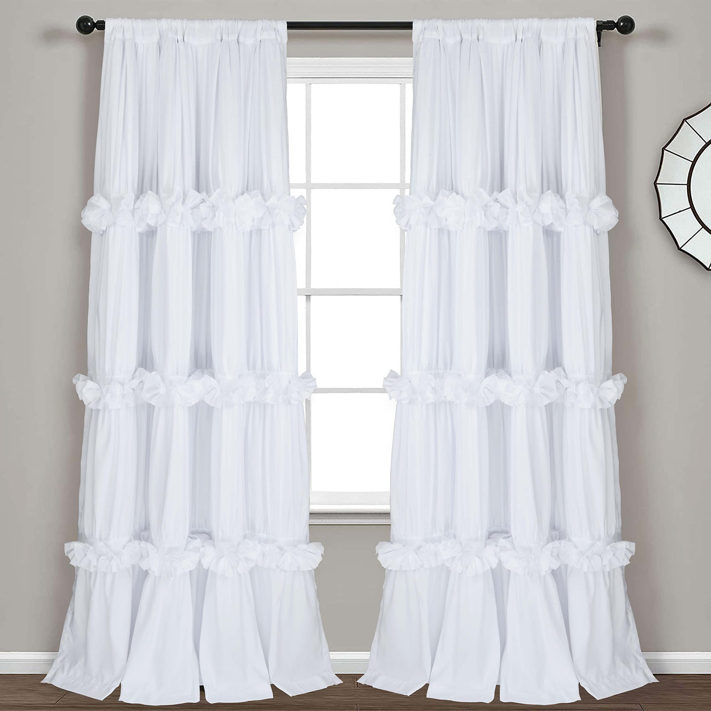 If You Are Looking For Elegant & Functional Blackout Curtains, The Ruffled Bow Tie Curtains Will Be A Great Idea. These Curtains Add A Girly Touch As Well As Eye-Catching Texture To Instantly Transform Your Room.Specifications:Color Scheme: White, Camelpackage Include:A Set Of 2 Panels, Each Panel Measures: 54'W X 84'L And Has 3'Rod Pocket For Easy Installation.Features:White Lining On Back To Make These Curtains Block Out 85% Sunlight To Create A Dark Environment And Offer You A Better Sleep.Decorative Ruffles & Handmade Butterfly Flowers Add A Touch Of Farmhouse Flair.Perfect Combination Of Blackout With Farmhouse Style, These Curtains Are More High End Than Common Curtains And Protect Your Privacy.High Performance On Light Blocking, Thermal Insulated, Noise Reducing, Energy Saving And Privacy Protection.Comes In An Exquisite Box Packaging, Ideal For Presenting.Suitable For Bedroom, Living Room, Dining Room, Office And Nursery.Made Of Premium Brushed Microfiber With 85% Blackout Lining. Its Soft & Comfy And The High Tech White Liner Helps To Block Out The Sunshine.Easy Care:Machine Washable And Wash Below 86F On Gentle Cycle. Mild Detergent No Bleaching. Tumble Dry And Iron At Low Heat On Face Side As Needed. Don'T Mix Wash With Hard Stuff In Case Of Scratching Curtains.Quality Guarantee:We Provide 30 Days Complimentary Return & Replacement Service, If Anything You Need Help, Please Contact Us, We Will Serve You Until You'Re Satisfied. Tips:Please Allow 0.5-1' Error Due To Manual Measurement.Due To Different Screen Display, The Color Of The Actual Item May Vary Slightly From The Displayed Images.
