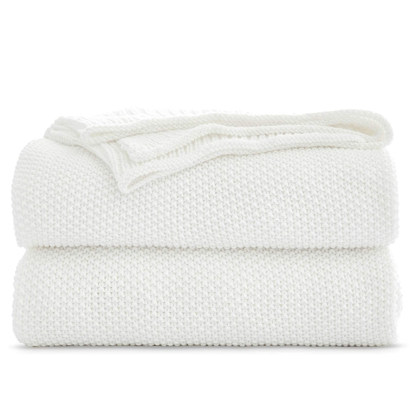 Ivory White Cotton Cable Knit Throw Blanket For Couch Sofa Chair Bed Home Decorative, 60 X 80 Inch Woven Throw Blankets With A Washing Bag Silk Bow Tie Package