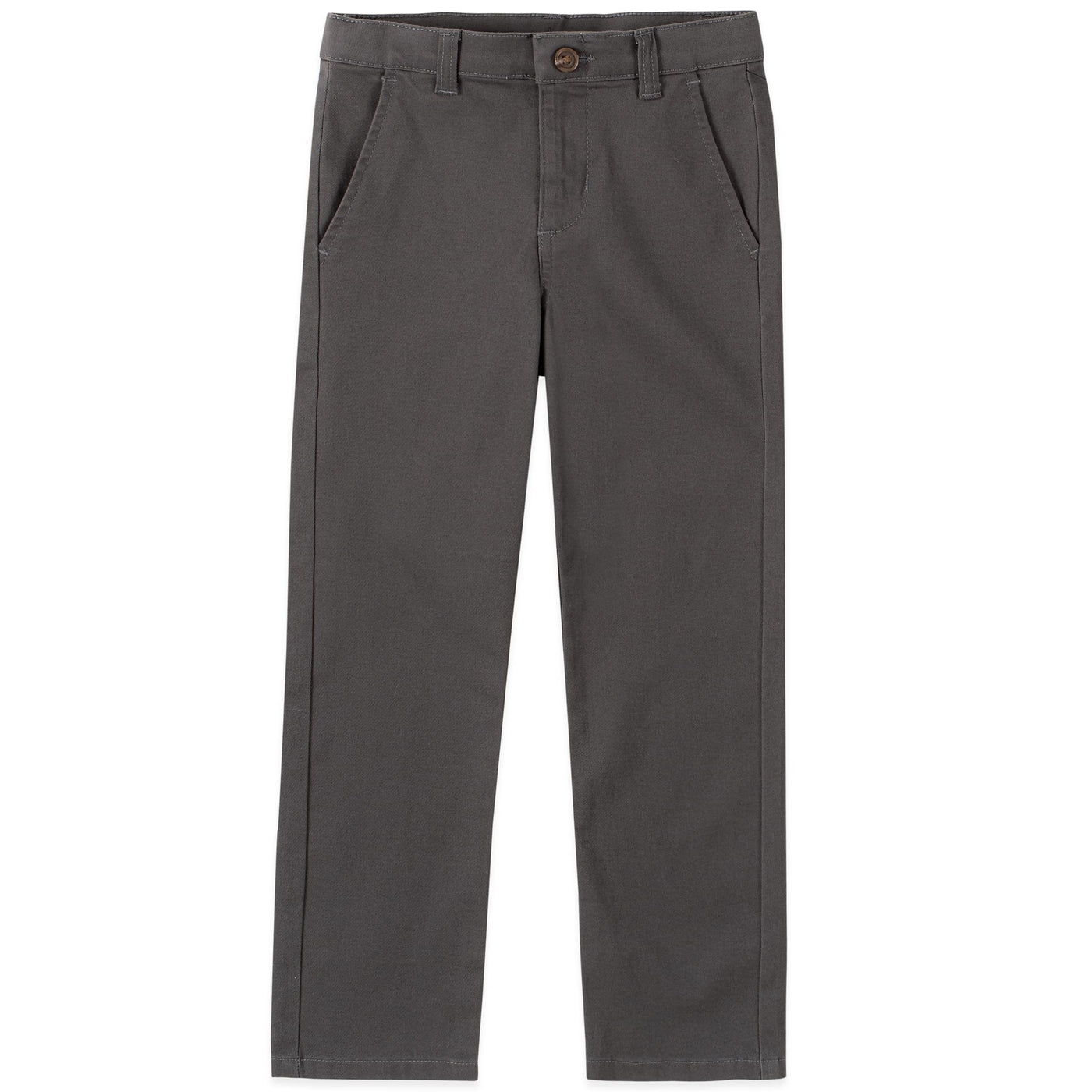 Izod Boys School Uniform Flat Front Twill Pants Khakis, Gray, 14 Husky