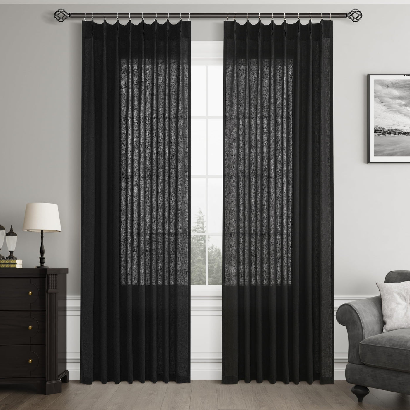 Joywell Primitive Linen Pinch Pleated Curtains 102 Inch Long,Back Tab Clip Rings Semi Sheer Light Filtering Drapes With Hooks Pr