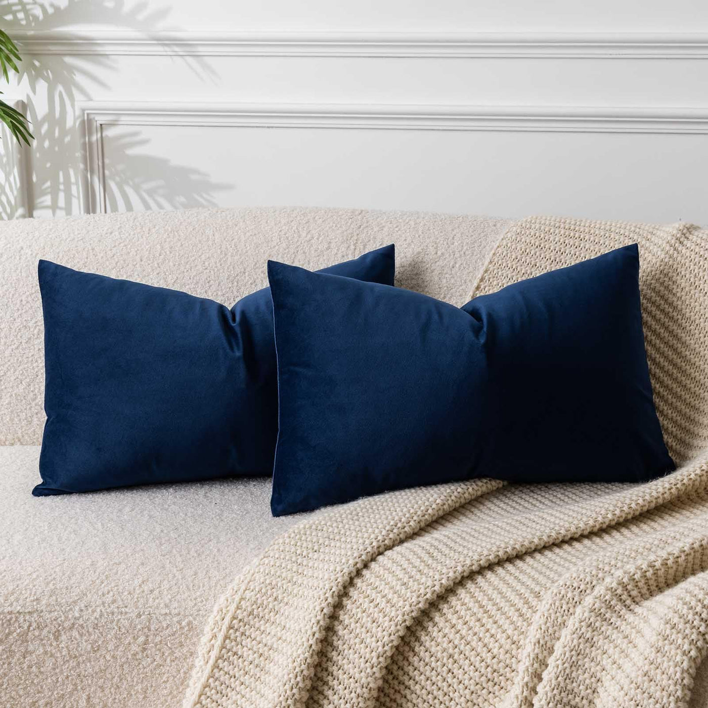 Juspurbet Navy Blue Decorative Lumbar Velvet Throw Pillow Covers 12X20,Pack Of 2 Luxury Soft Solid Cushion Cases For Sofa Couch