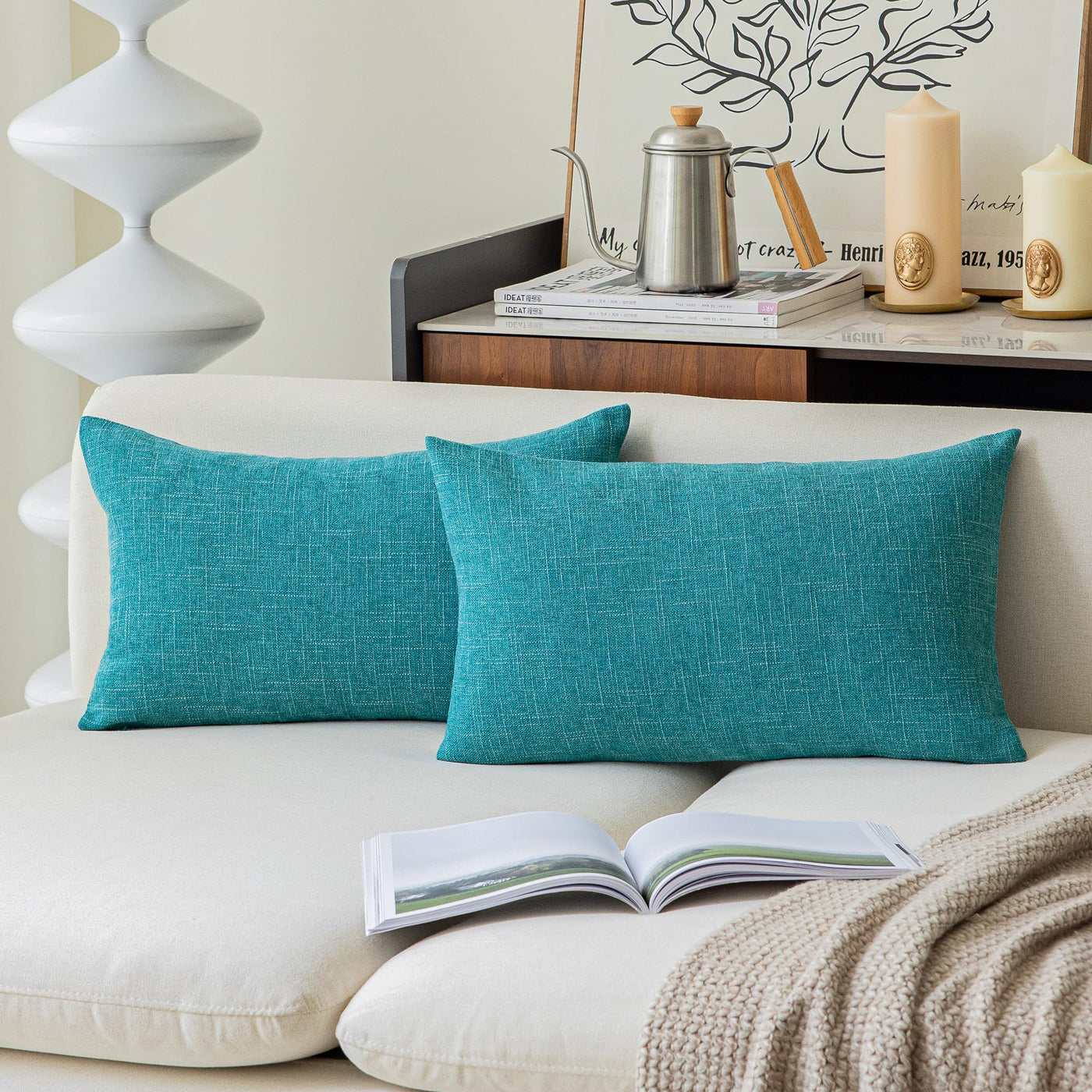Kevin Textile Decorative Toss Pillow Case Star Faux Linen Cushion Cover For Chair, 12X20-Inch (30X50Cm), 2 Packs, Peacock Blue