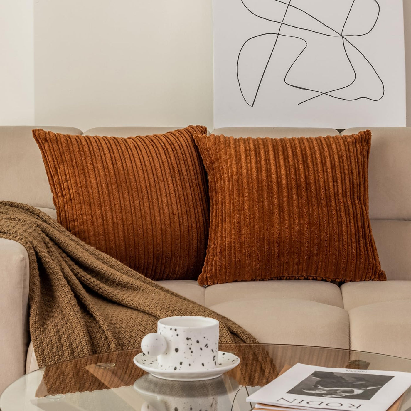 Kevin Textile Fall Decorative Pillow Covers For Autumn Decorative Couch Throw Pillow Covers Sofa Bench, Set Of 2, 20X20 Inches, 50Cm, Brown