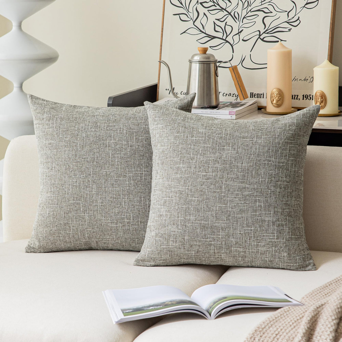 Kevin Textile Faux Linen Square Throw Pillow Covers Sham Cushion Case For Car/Couch Use, 16 Inch X 16 Inch (2 Packs, Sesame Grey