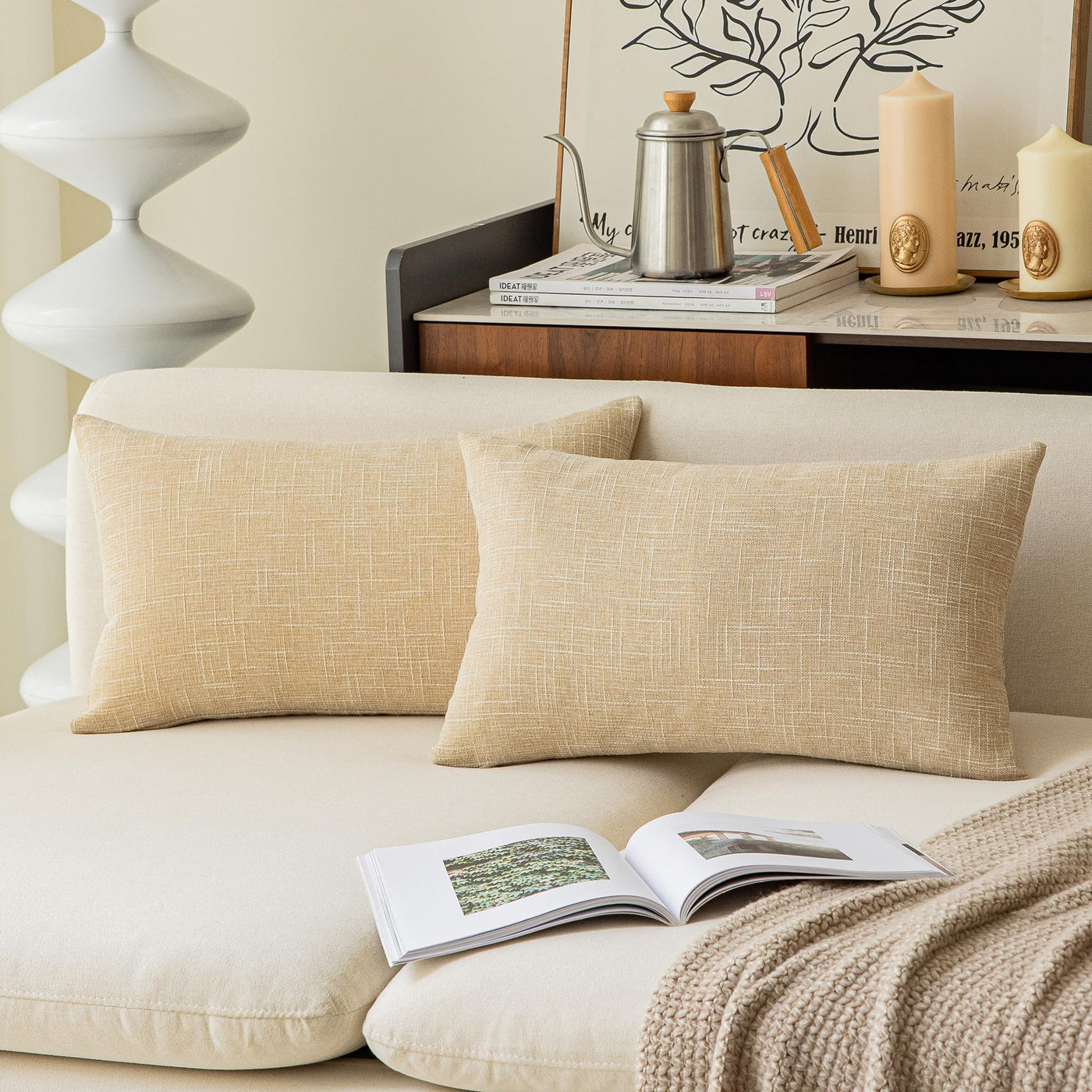 Kevin Textile Lumbar Throw Pillow Cover Both Sides Faux Linen Soft Solid Decorative Rectangular Cushion Case For Bedroom/Car, 2